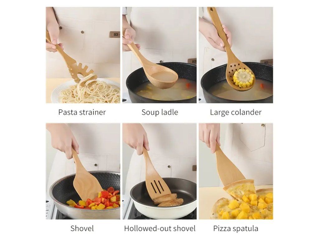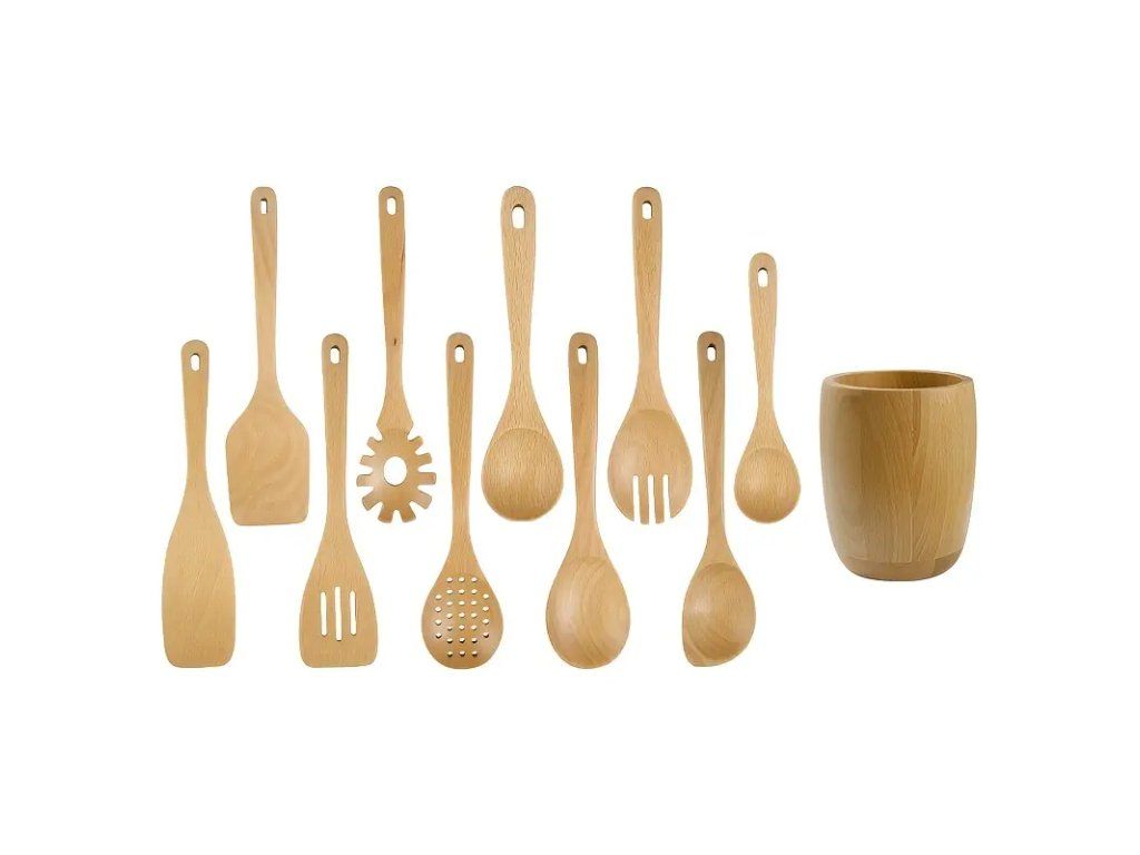 Praktická 11dílná sada kuchyňských nástrojů z bukového dřeva s držákem představuje ideální volbu pro každou domácí i profesionální kuchyni. Každý kus je pečlivě opracován z kvalitního bukového dřeva, které vyniká pevností, odolností vůči opotřebení a přirozenou elegancí. Ergonomické rukojeti zajišťují pohodlný a jistý úchop při každodenním vaření. Sada obsahuje nejběžněji používané nástroje, které pokryjí široké spektrum kuchyňských úkonů — míchání, servírování, obracení i přípravu těst. Kompaktní dřevěný držák umožňuje přehledné uspořádání nástrojů přímo na pracovní ploše nebo polici, což šetří místo a usnadňuje rychlý přístup. Dřevěné nástroje jsou šetrné k povrchům nádobí, včetně nelepivých povrchů, a snižují riziko poškrábání. Doporučujeme ruční mytí a pravidelné ošetřování olejem na dřevo pro prodloužení životnosti a zachování přirozeného vzhledu. Jednoduchý a nadčasový design se hodí do většiny kuchyňských stylů a zároveň působí esteticky. Technické vlastnosti: - Materiál: bukové dřevo - Počet dílů: 11 - Součástí: držák pro uskladnění - Vhodné pro ruční mytí; nedoporučuje se do myčky - Doporučené ošetření: potravinářský olej pro dřevo Tato sada je praktickým a stylovým doplňkem vaší kuchyně, vhodná také jako kvalitní dárek pro milovníky vaření.Buďte první, kdo napíše příspěvek k této položce.
