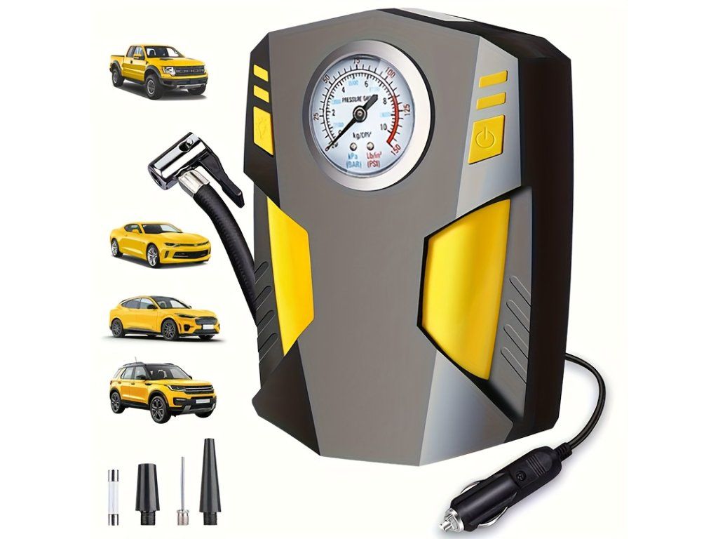 Přenosný 12V kompresor je určen pro huštění pneumatik a nafukovacích předmětů přímo z autozapalovače. Kompresor dosahuje maximálního tlaku 150 PSI (cca 10 bar) a je vybaven manometrem pro kontrolu tlaku během huštění. Napájení probíhá přes 12V zásuvku v automobilu, což umožňuje použití kdekoliv na cestách. Součástí balení jsou adaptéry pro huštění pneumatik automobilů, motocyklů, jízdních kol i nafukovacích sportovních potřeb. Specifikace • Typ: přenosný kompresor • Napájení: 12V (autozapalovač) • Maximální tlak: 150 PSI (cca 10 bar) • Funkce: manometr pro měření tlaku • Použití: auto, motocykl, kolo, nafukovací předmětyBuďte první, kdo napíše příspěvek k této položce.