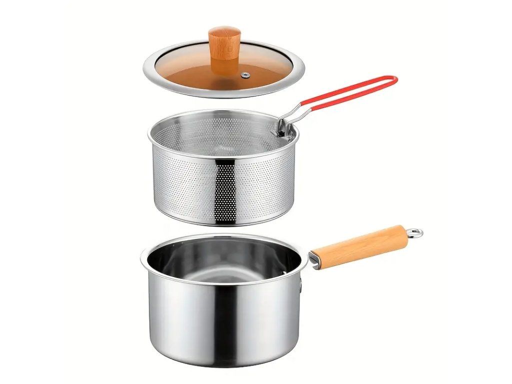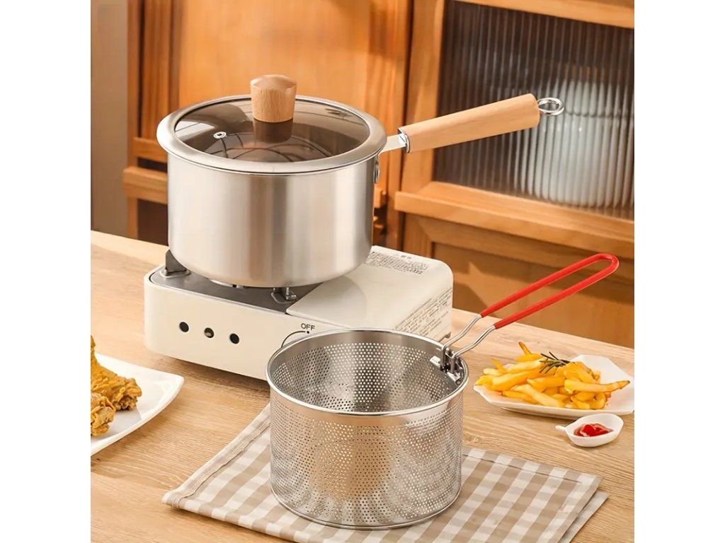 Praktická nerezová sada do fritézy o průměru 18 cm – 3 díly. Sada obsahuje pevný napařovací koš a dva doplňkové komponenty, které umožňují flexibilní použití ve fritézách a hrncích stejného průměru. Vyrobena z kvalitní nerezové oceli odolné proti korozi, snadno se čistí a zajišťuje dlouhou životnost. Napařovací koš je navržen pro rovnoměrné proudění páry a bezpečné umístění potravin nad hladinou tekutiny, ideální pro zdravé vaření v páře, rozmrazování nebo vaření příloh. Díky pevné konstrukci a dobře tvarovanému dnu udrží i menší kousky potravin na místě a zabrání jejich vypadávání. Sada je univerzální a vhodná pro domácí i profesionální použití. Hodí se do většiny fritéz, hrnců a parních nádob s průměrem 18 cm. Nerezový povrch zajišťuje hygienickou manipulaci s potravinami a neovlivňuje jejich chuť. Jednoduchá údržba – lze mýt ručně i v myčce. Technické výhody: - materiál: nerezová ocel (odolná proti korozi) - průměr: 18 cm - počet dílů: 3 - vhodné do myčky nádobí - univerzální použití pro fritézy, hrnce a parní nádoby Sada poskytuje praktické a trvanlivé řešení pro zdravé vaření a efektivní přípravu pokrmů v páře nebo ve fritéze.Buďte první, kdo napíše příspěvek k této položce.