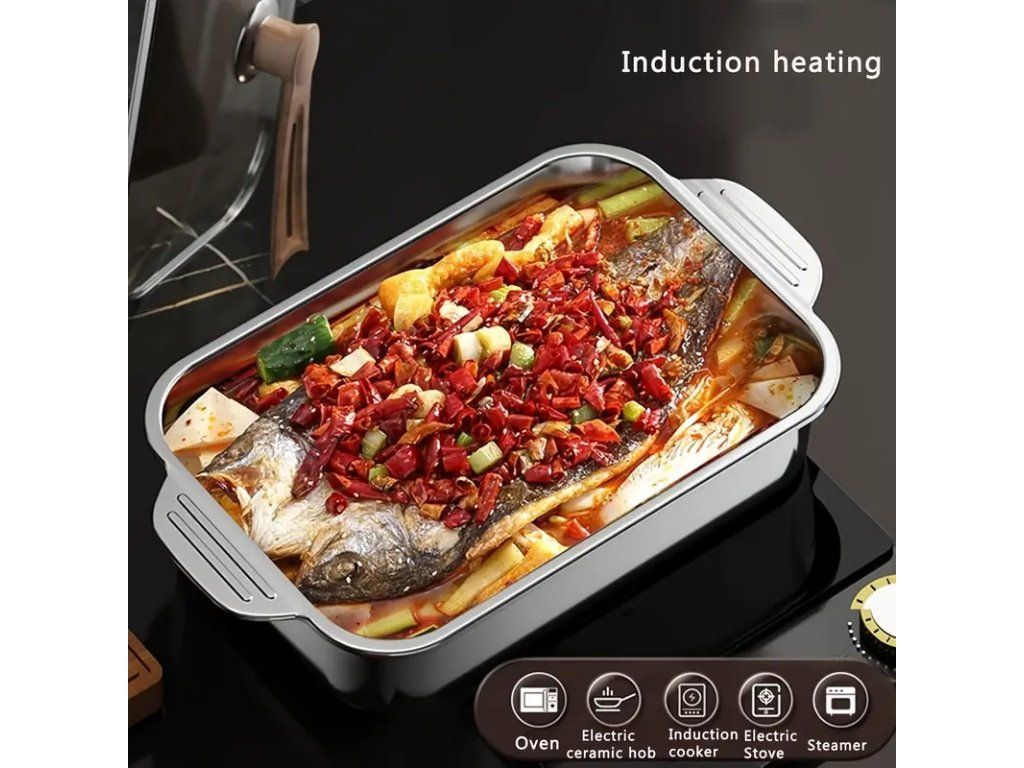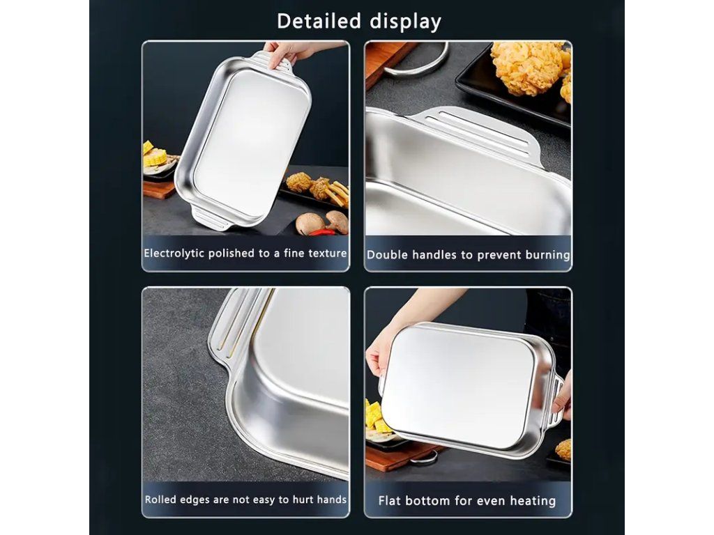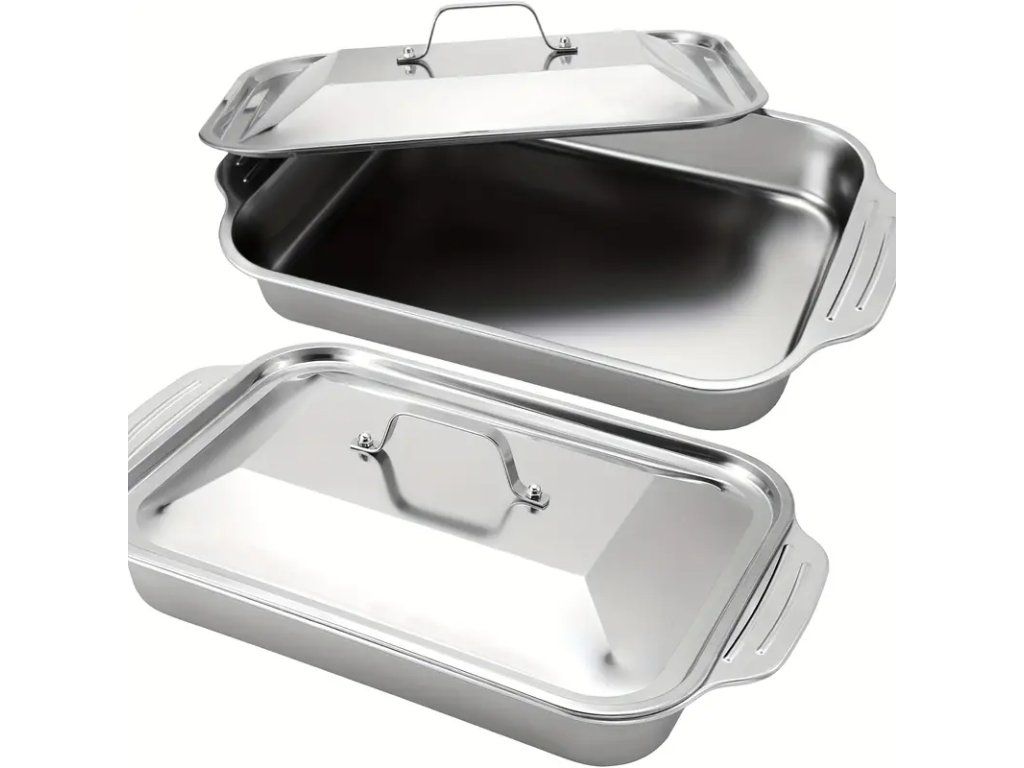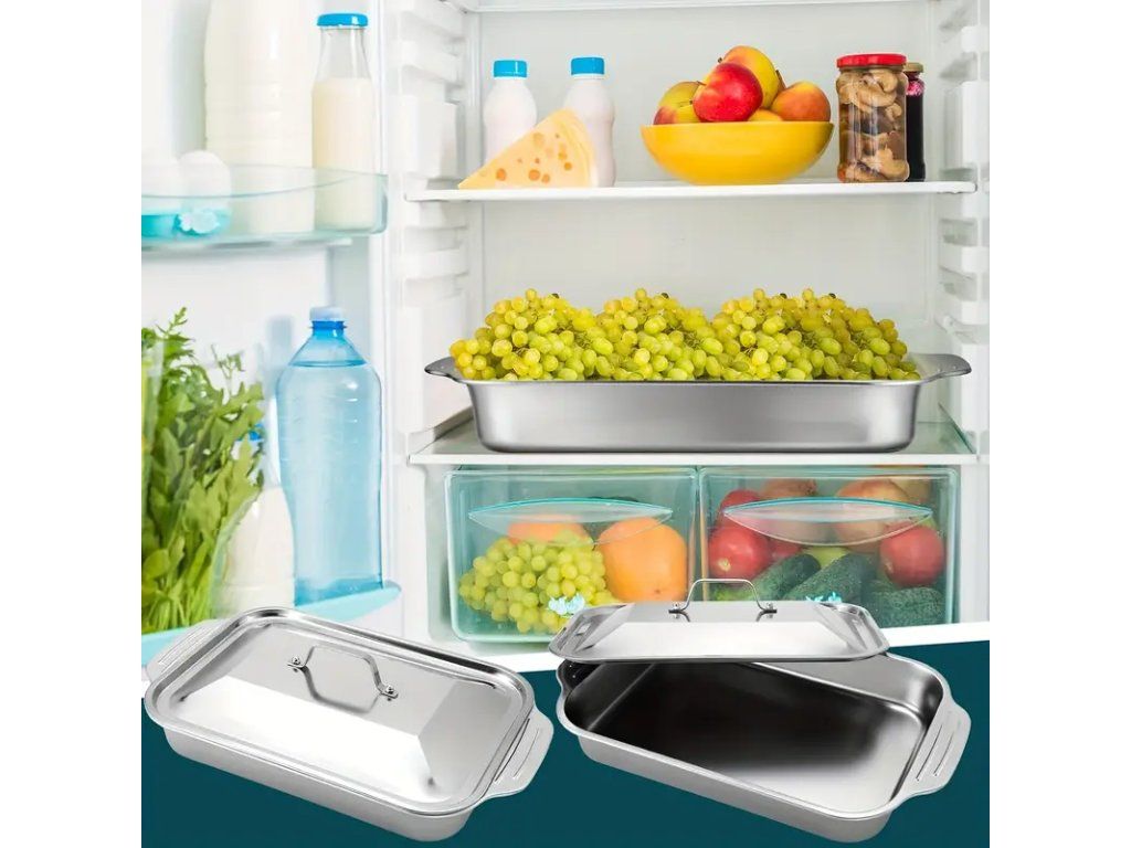 Sada 2 pečicích plechů z nerezové oceli s poklicí — rozměr 41 × 24 × 8,5 cm každý. Vysoce kvalitní nerezová ocel zajišťuje dlouhou životnost, odolnost proti korozi a snadnou údržbu. Univerzální použití v domácí i profesionální kuchyni: pečení masa, zeleniny, zapékaných pokrmů i příprava příloh. Poklice pomáhá udržet vlhkost a chuť pokrmů, umožňuje šetrné dusení a rovnoměrné propečení. Ergonomické provedení s mírně ohnutými okraji pro snadné uchopení a manipulaci. Hladký povrch zjednodušuje čištění, plechy lze mýt ručně i v myčce nádobí. Robustní konstrukce brání deformaci při vysokých teplotách. Kompaktní rozměr 41 × 24 × 8,5 cm je vhodný do většiny domácích i menších profesionálních trub a usnadňuje skladování. Ideální volba pro všechny, kteří hledají praktický, odolný a univerzální pečicí nástroj. Sada dvou plechů nabízí variabilitu při přípravě více pokrmů najednou nebo záložní plech při větších porcích.Buďte první, kdo napíše příspěvek k této položce.
