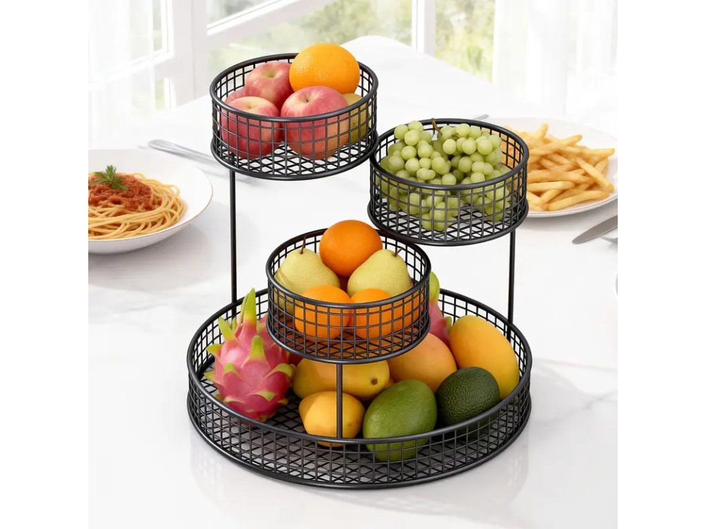 Stylový třípatrový kulatý černý kovový košík na ovoce je praktickým a elegantním doplňkem do každé kuchyně, jídelny nebo prodejen s potravinami. Pevná kovová konstrukce zajišťuje dlouhou životnost a stabilitu, zatímco černý lakovaný povrch dodává moderní a nadčasový vzhled, který snadno ladí s různými interiéry. Tento košík nabízí tři prostorné patra pro přehledné uspořádání ovoce, zeleniny nebo drobných potravin. Otevřená konstrukce umožňuje dobré proudění vzduchu, což napomáhá delší čerstvosti uložených potravin. Kulatý tvar šetří místo na pracovní ploše a zároveň poskytuje snadný přístup k obsahu z každé strany. Košík je lehký, ale stabilní, a díky kompaktním rozměrům je vhodný i na menší kuchyňské linky či stoly. Snadná údržba – stačí setřít vlhkým hadříkem. Univerzální použití: vhodný do domácností, kaváren nebo obchodů jako praktický a estetický způsob vystavení zboží. Technické výhody: - třípatrové uspořádání pro větší kapacitu při minimální ploše - pevný kovový materiál s odolným černým povrchem - otevřená konstrukce pro optimální ventilaci - elegantní kulatý design, který ladí s moderním interiérem Doplňte svou kuchyň tímto funkčním a stylovým košíkem, který kombinuje praktičnost s atraktivním designem.Buďte první, kdo napíše příspěvek k této položce.