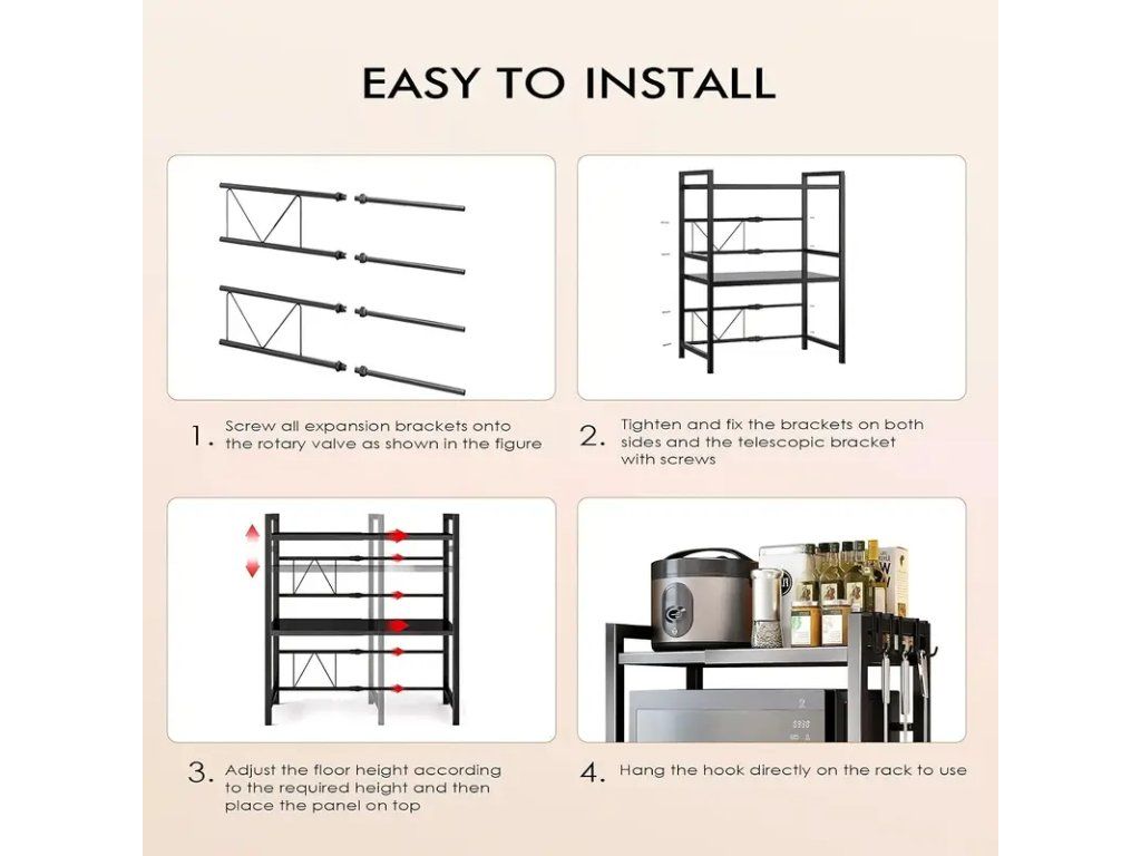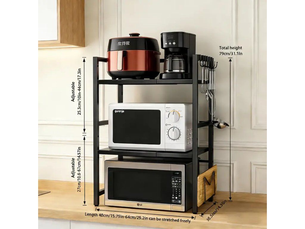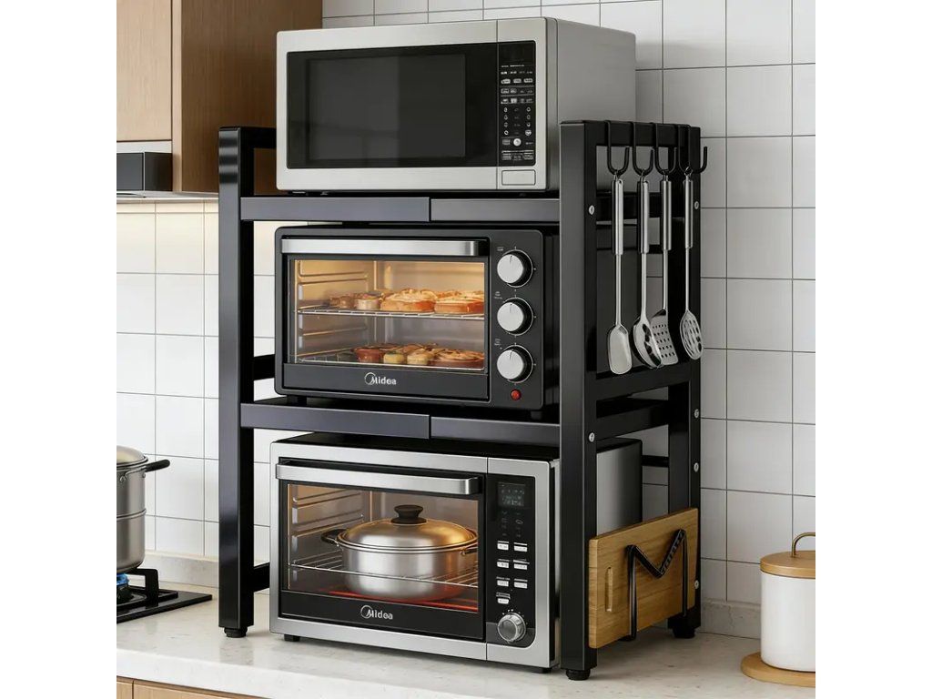 Praktický 3patrový výsuvný kuchyňský stojan na mikrovlnku v elegantním černém provedení je ideálním řešením pro organizaci kuchyně a maximalizaci úložného prostoru. Robustní konstrukce poskytuje stabilní oporu pro mikrovlnnou troubu, zatímco tři výsuvné police umožňují pohodlný přístup k pokrmům a příslušenství. Černý povrch působí moderně a snadno ladí s většinou kuchyňských zařízení. Stojan je navržen tak, aby šetřil místo a zlepšil ergonomii přípravy jídla — horní police unese mikrovlnku, střední a dolní police slouží pro skladování nádobí, plechů, kuchyňských spotřebičů nebo potravin. Výsuvné lišty zajišťují hladký chod polic a usnadňují manipulaci i při plném zatížení. Konstrukce je odolná vůči opotřebení a jednoduchá na údržbu, což zaručuje dlouhodobé bezproblémové používání. Tento stojan je vhodný do menších i větších kuchyní, kancelářských kuchyňek nebo domácích koutků. Díky univerzálnímu designu je montáž snadná a výsledkem je funkční doplněk, který zlepší pořádek a využití prostoru v domácnosti.Buďte první, kdo napíše příspěvek k této položce.