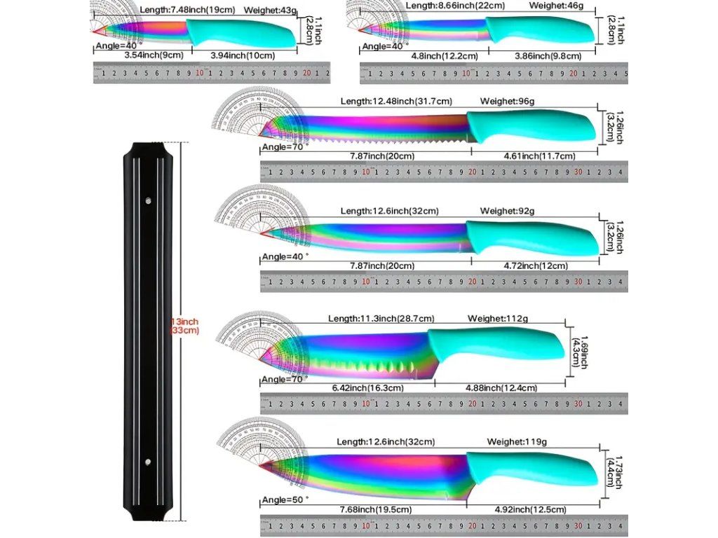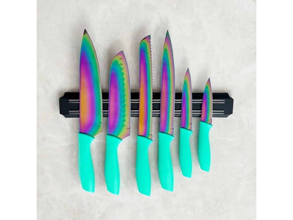 Kompletní 7dílná sada kuchyňských nožů s magnetickým držákem – kvalitní a praktické řešení pro každou moderní kuchyni. Sada obsahuje všechny základní nože potřebné pro každodenní přípravu pokrmů: kuchařský nůž, nůž na pečivo, nůž na zeleninu (paring), nůž na čištění, nůž na maso a univerzální nůž, doplněné o funkční ostřívátko a pevný magnetický držák pro bezpečné a přehledné uložení. Nože jsou vyrobeny z nerezové oceli odolné proti korozi, s ergonomickými rukojeťmi z protiskluzového materiálu pro komfortní a bezpečné držení při práci. Ostré a precizně broušené čepele zajišťují přesné krájení, snadné porcování a dlouhodobou životnost. Magnetický držák umožňuje rychlý přístup k nástrojům, šetří místo na pracovní ploše a zároveň chrání ostří nožů před poškozením. Sada je ideální pro domácnosti, ale i pro malé gastronomické provozy. Díky elegantnímu designu je vhodná jako praktický dárek pro nové či stávající kuchaře. Snadná údržba – nože doporučujeme mýt ručně, ostřívátko pravidelně doplňuje výkon čepelí. Technické vlastnosti: - Materiál čepele: nerezová ocel - Materiál rukojeti: protiskluzový plast/kompozit - Obsah sady: 7 dílů (různé typy nožů + magnetický držák) - Použití: krájení, porcování, nakrajování, čištění a další kuchyňské úkony - Upozornění: skladujte bezpečně mimo dosah dětí Vyberte si tuto 7dílnou sadu pro kombinaci funkčnosti, bezpečnosti a estetického provedení, která zlepší vaši kuchyňskou výbavu a usnadní přípravu jídel.Buďte první, kdo napíše příspěvek k této položce.