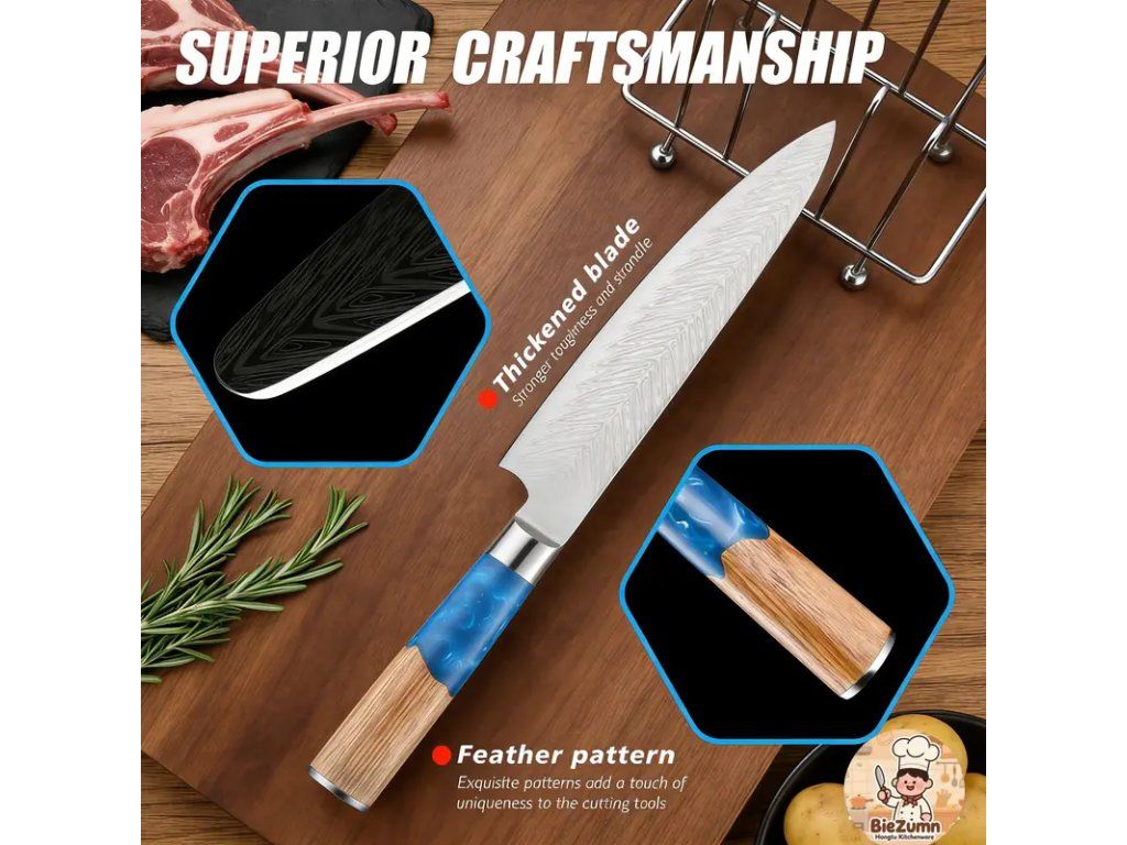 Představujeme 7dílnou sadu prémiových kuchyňských nožů s modrou rukojetí, navrženou pro každodenní použití i náročnější kulinářské úkoly. Sada kombinuje odolné materiály, precizní zpracování a ergonomii tak, aby práce v kuchyni byla bezpečná, pohodlná a efektivní. Každý nůž má čepel z vysoce kvalitní nerezové oceli, která zajišťuje dlouhotrvající ostrost, odolnost proti korozi a snadnou údržbu. Optimalizované tvary čepelí umožňují přesné krájení, řezání a filetování různých surovin, zatímco vyvážená konstrukce nástrojů zlepšuje kontrolu a snižuje únavu při delším používání. Modrá ergonomická rukojeť je designově výrazná a zároveň tvarovaná pro pevné a bezpečné držení. Sada obsahuje pečlivě vybrané nože pokrývající běžné kuchyňské potřeby: šéfkuchařský nůž, univerzální kuchyňský nůž, krájecí nůž, nůž na pečivo, nůž na zeleninu, nůž na očišťování a ostrou ocílku/multifunkční nástroj. Díky tomu máte po ruce nástroje potřebné pro přípravu masa, pečiva, zeleniny i detailní úpravy surovin. Hlavní přednosti: - Čepele z kvalitní nerezové oceli pro dlouhou životnost a odolnost proti korozi - Ostré, přesné ostří pro čisté a konzistentní řezy - Ergonomické modré rukojeti pro bezpečný a pohodlný úchop - Kompletní sestava nožů pokrývající nejčastější kuchyňské úkony - Snadná údržba a jednoduché ostrení Tato 7dílná sada je vhodná pro domácí kuchaře i nadšené amatéry, kteří ocení spojení funkčnosti, kvality a estetického provedení. Investujte do nástrojů, které zjednoduší přípravu jídel a zvýší přesnost vaší práce v kuchyni.Buďte první, kdo napíše příspěvek k této položce.