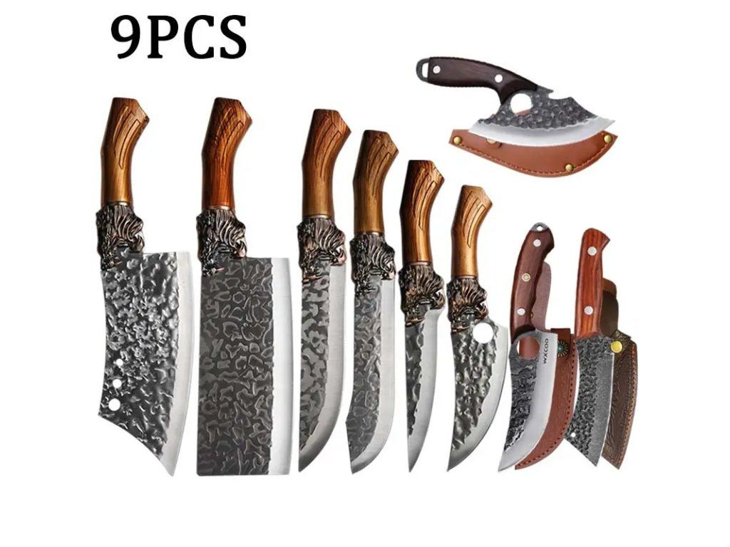 Profesionální 9dílná sada kovaných kuchyňských nožů nabízí kompletní vybavení pro každodenní i náročné kuchyňské práce. Nože jsou kované z vysoce kvalitní nerezové oceli, která zajišťuje výbornou odolnost proti korozi, dlouhou životnost ostří a snadnou údržbu. Precizní kování poskytuje optimální poměr pevnosti a pružnosti, což zvyšuje odolnost proti lámání a deformacím při intenzivním používání. Sada obsahuje základní typy nožů pro různé úkony: kuchařský nůž, šéfkuchařský nůž, nůž na chléb, filetovací nůž, nůž na zeleninu (nakrájecí), nůž na drobné práce (univerzální), malý nůž na ovoce, ocílku a praktický blok nebo stojan pro bezpečné uložení. Ergonomické rukojeti zajišťují pevný a komfortní úchop, minimalizují únavu při delší práci a dobře padnou do ruky jak pro praváky, tak pro leváky. Vyvážené těžiště nožů přispívá k přesnému a bezpečnému krájení. Díky ostrému, dlouhotrvajícímu ostří a kvalitnímu zpracování jsou nože vhodné pro domácí i profesionální použití v restauracích, kuchyňských provozech nebo pro náročné hobby kuchaře. Sada je navržena tak, aby pokryla všechny běžné kuchyňské činnosti — krájení, porcování, plátkování, sekání bylin i pečiva. Snadná údržba: doporučuje se ruční mytí a okamžité osušení pro prodloužení životnosti ostří a povrchu. Pravidelné broušení nebo odborné broušení zajistí stálou kvalitu řezu. Baleno ve stylovém a odolném bloku, sada představuje i atraktivní volbu jako dárek pro gurmány a nové kuchaře. Technické vlastnosti (obecné): kovaná nerezová ocel pro zvýšenou pevnost, ergonomické rukojeti, vyvážené provedení, sada 9 kusů včetně ocílky a bloku.Buďte první, kdo napíše příspěvek k této položce.