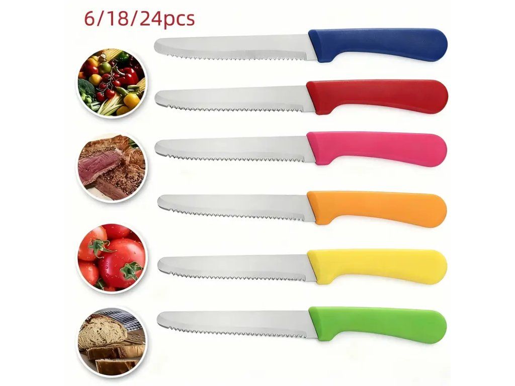 Barevné nerezové stolní nože s vroubkovanou čepelí představují stylové a praktické doplnění každého jídelního servisu. Ostrá vroubkovaná čepel z nerezové oceli zajišťuje čistý a precizní řez u pečiva, masa i zeleniny, přičemž odolává korozi a zachovává ostrost po dlouhou dobu. Ergonomická rukojeť v pestrých barevných provedeních poskytuje pevný a pohodlný úchop, zvýrazňuje design stolu a usnadňuje rozlišení příborů v domácnosti i ve veřejném stravování. Nože jsou snadné na údržbu — doporučujeme ruční mytí pro zachování barev a povrchové úpravy, avšak nerezové provedení umožňuje i mytí v myčce. Vhodné pro každodenní použití i speciální příležitosti, ideální pro domácnosti, kavárny nebo catering. Nabízejí kombinaci funkčnosti, trvanlivosti a atraktivního vzhledu, která zvyšuje komfort stolování a estetiku servírování.Buďte první, kdo napíše příspěvek k této položce.