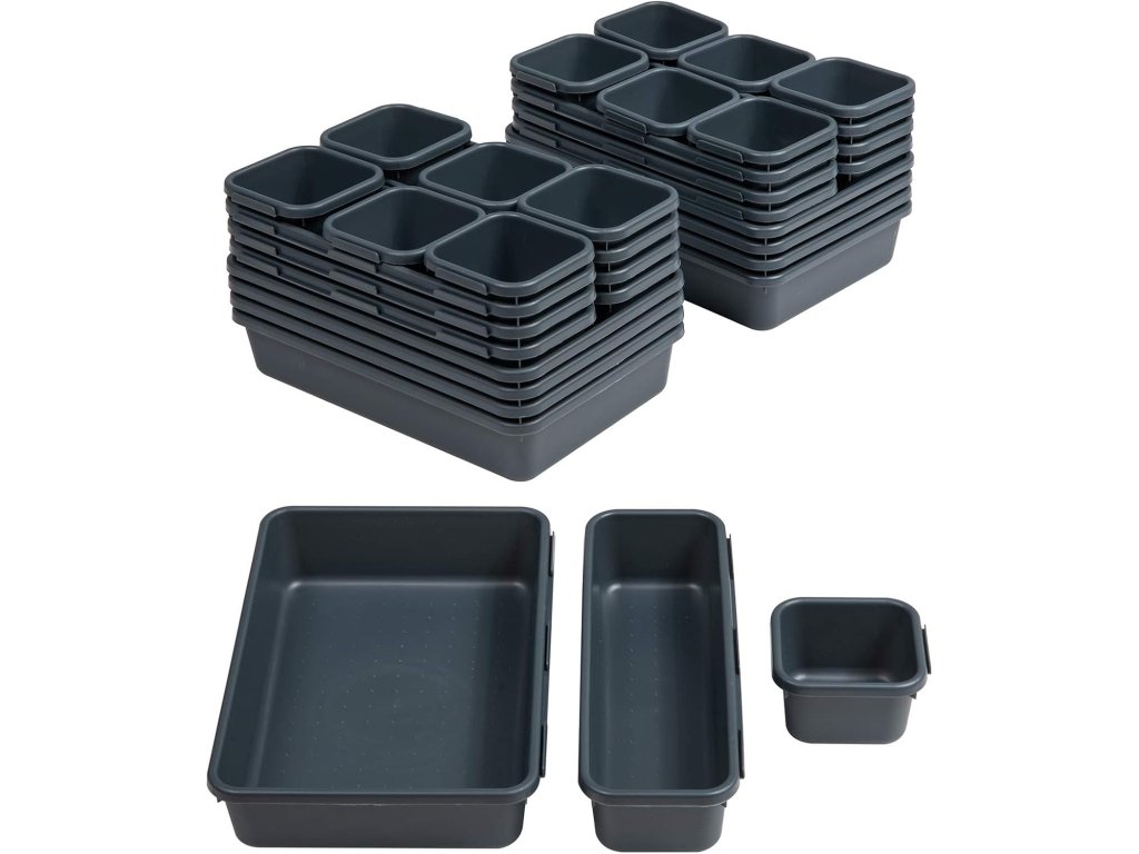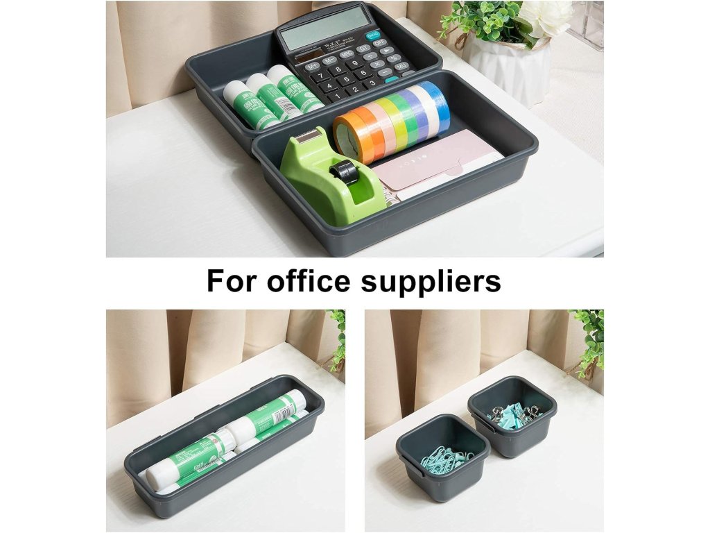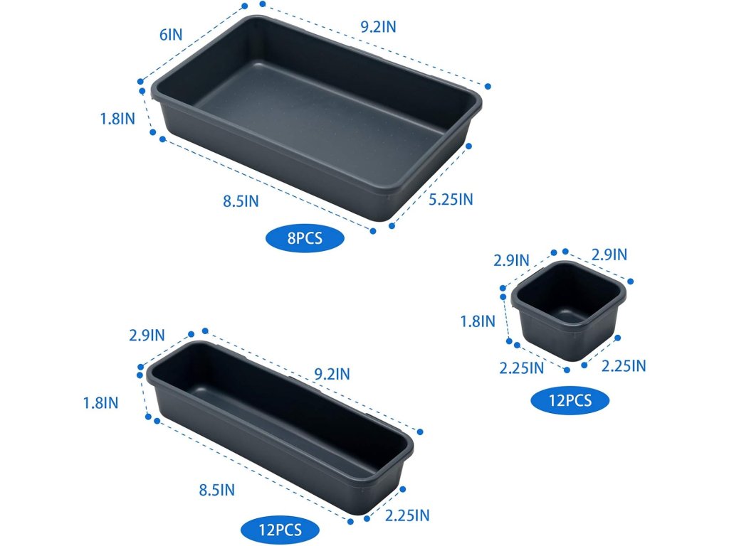 Organizéry do zásuvek BYCY jsou vyrobeny z odolného plastu, což je cenné pro vaše potřeby organizéru. Různé velikosti: Sada 32 kancelářských organizérů do zásuvek zahrnuje 8 – velké (9,2 x 6,1 x 1,8 palce), 12 – střední (9,2 x 2,9 x 1,8 palce), 12 – malé (2,7 x 2,7 x 1,8 palce) Volná kombinace: Dostatek pro vaše potřeby zásuvky, vhodná velikost pro jakýkoli typ nebo specifické potřeby. Propojovací design: Tato funkce vám pomůže kombinovat a vytvořit váš stylový zásuvek – skvělé řešení pro vaše věci, které jsou úhlednější a snadněji k nalezení, což šetří čas.Doplňkové parametry
