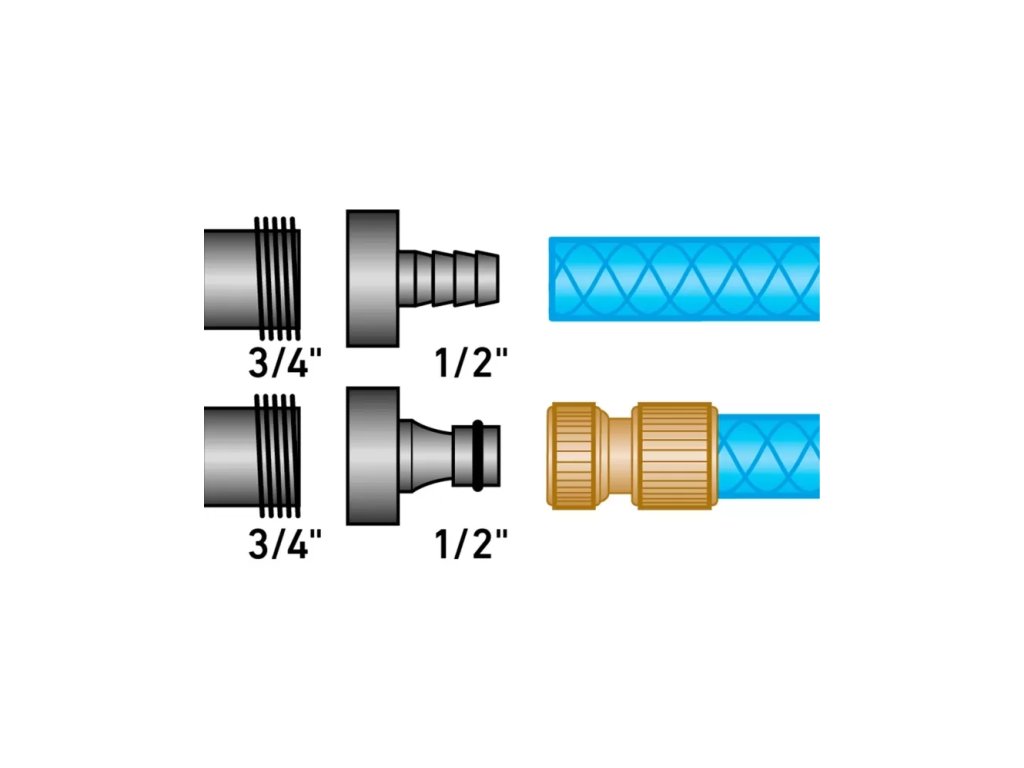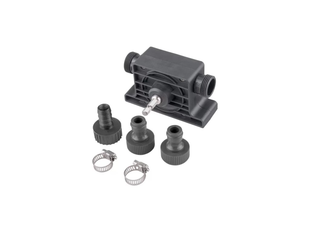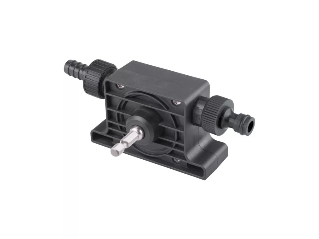 Čerpadlo na vrtačku pro 1/2" hadici, čerp. Výkon až 18l/min, otáčky max. 3000/min Pro max. omezení nežádoucího přisávání vzduchu doporučujeme na sací straně přímé zapojení čerpadla na 1/2" hadici pomocí závitové koncovky G3/4" s nátrubkem pr. 8mm nasazeným přímo na tuto hadici a zajištěním těsnosti spoje hadicovou sponou Omezte na max.15-20sekund chod čerpadla tzv. "na sucho" Doplňující parametr závit obou hrdel G3/4", hřídel 1/4" šestihran, pro čerpání vody o teplotě 5-40°C, max.sací hloubka 1m a výtlačná výška 3m; dodáváno se 2ks koncovkami/adaptéry závit G3/4"- konektor 1/2", 1ks koncovky/adaptéru závit G3/4"- nátrubek pr. 8mm a hadicovou sponouDoplňkové parametry