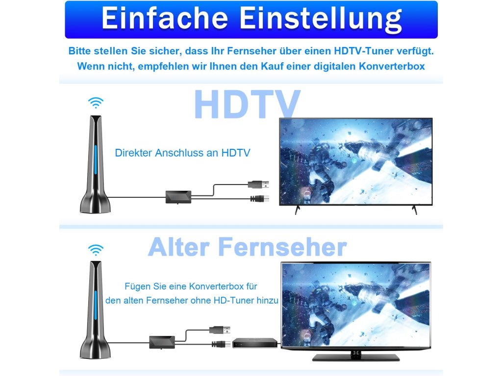 Výkonná vnitřní anténa pro příjem digitálního televizního vysílání (DVB-T/DVB-T2). Díky integrovanému zesilovači poskytuje stabilní a kvalitní příjem signálu i v místech se slabším pokrytím. Moderní kompaktní design v černé barvě se hodí do každého interiéru. Snadná instalace pomocí USB napájení a koaxiálního připojení. Specifikace: – Typ: pokojová anténa s zesilovačem – Příjem: DVB-T/DVB-T2 – Barva: černá – USB napájení – Vhodná pro televizory, set-top boxy a další zařízení s anténním vstupem – Délka kabelu: cca 3,5 mDoplňkové parametry
