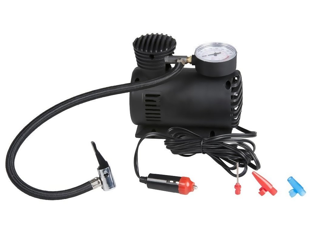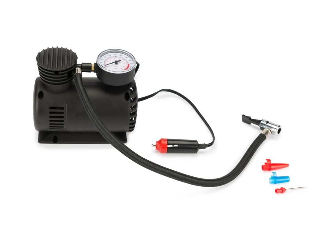 Mobilní kompresor vhodný pro huštění pneumatik automobilů, jízdních kol, nafukovacích matrací, bazénů a sportovního vybavení. Ideální pomocník na cesty, dovolenou nebo do kempu. Technické parametry: • Napětí: 12 V (připojení do autozásuvky) • Maximální tlak: 250 PSI / 17 bar • Proud: 10 A • Manometr: integrovaný, ukazuje tlak v PSI i barech • Délka napájecího kabelu: 2,85 m • Typ zástrčky: autozapalovač (cigaretová zásuvka) • Příslušenství: 3 adaptéry na různé typy ventilů Výhody: • Kompaktní rozměry • Snadné použití • Všestranné využití • Vhodné pro nouzové situace i běžné huštěníDoplňkové parametry