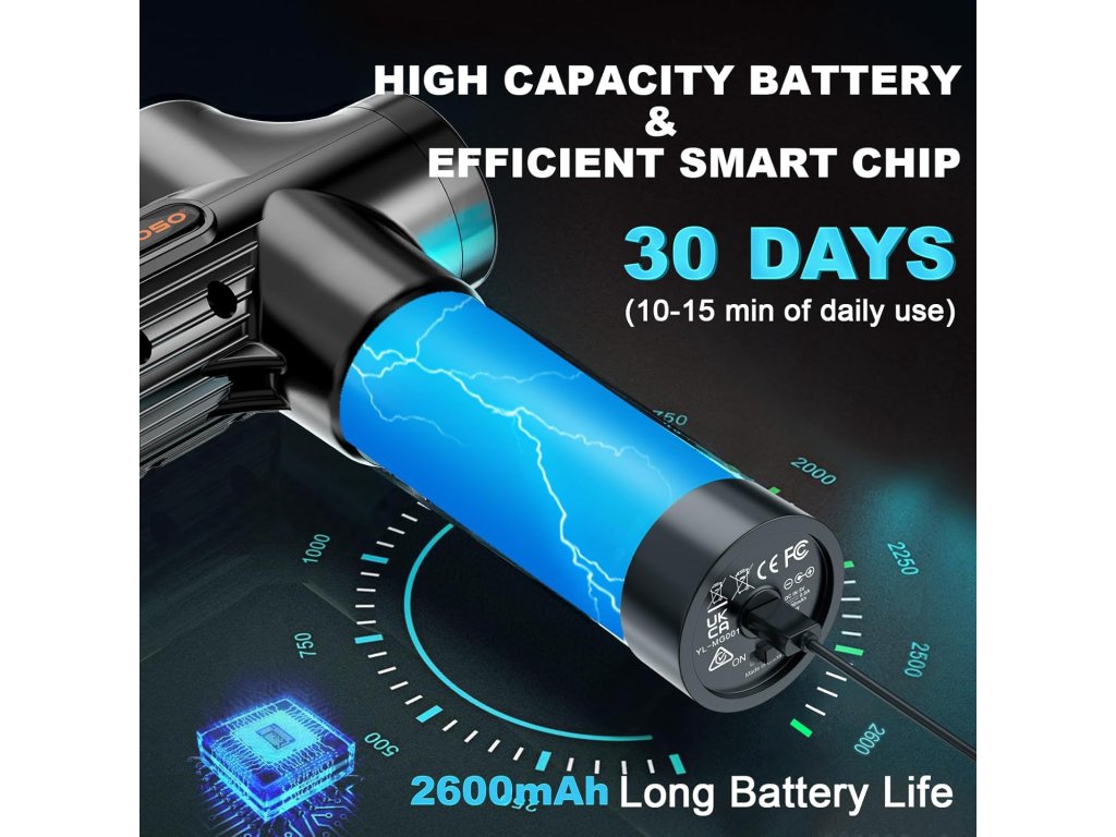• 30 nastavitelných rychlostí – až 4800 otáček za minutu pro různé úrovně intenzity • 8 výměnných hlavic – pro cílenou masáž různých svalových skupin • Tichý provoz (35–45 dB) – díky inteligentnímu čipu a systému redukce hluku • Lehká konstrukce (1 kg) – snadno přenosná, ideální i na cesty • Dlouhá výdrž baterie (6–8 hodin) – při běžném používání vydrží až 30 dní • LCD dotykový displej – pro snadné ovládání rychlosti a kontrolu stavu baterie • Chladicí systém – zabraňuje přehřátí při delším používáníBuďte první, kdo napíše příspěvek k této položce.