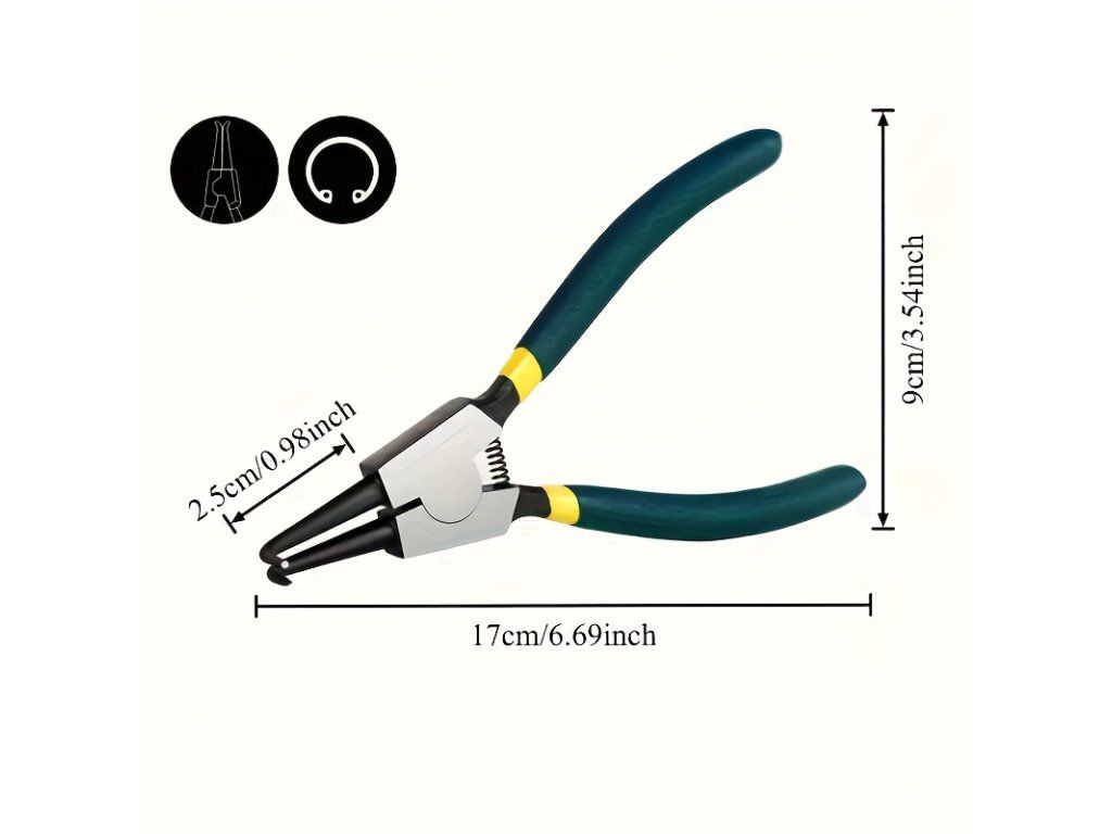 Kleště na pojistné kroužky jsou určeny pro montáž a demontáž vnitřních i vnějších segrovek. Kleště jsou vybaveny vyměnitelnými hroty, které umožňují práci s různými typy pojistných kroužků. Součástí bývají 4 sady hrotů – rovné i zahnuté – pro lepší přístup i do hůře dostupných míst. Konstrukce obsahuje pružinový mechanismus pro snadné ovládání a ergonomické rukojeti, které zajišťují pohodlný a jistý úchop při práci. Specifikace • Typ: kleště na pojistné kroužky (segrovky) • Hroty: vyměnitelné (rovné a zahnuté) • Funkce: vnitřní i vnější kroužky • Mechanismus: pružinový • Rukojeť: ergonomická • Použití: údržba strojů a zařízeníBuďte první, kdo napíše příspěvek k této položce.