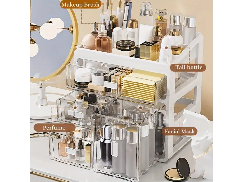 Praktický kosmetický organizér s průhlednými zásuvkami je ideální řešení pro ukládání make-upu, rtěnek, štětců, šperků a drobných kosmetických doplňků. Díky průhledným zásuvkám rychle najdete hledanou věc bez nutnosti vyndávání obsahu. Kompaktní a stabilní konstrukce šetří místo na toaletním stolku, v koupelně nebo v šatně. Organizér je vyroben z odolného plastu, který se snadno čistí a dlouhodobě udrží svůj tvar. Více oddělených zásuvek umožňuje přehledné rozčlenění podle typu výrobků nebo frekvence použití. Nízké zásuvky jsou vhodné pro stíny, paletky a kompakt, zatímco užší přihrádky pojmou rtěnky, tužky a pinzety. Protiskluzové nožky zajišťují stabilitu a zabraňují poškrábání povrchu nábytku. Tento organizér je praktický jak pro domácí použití, tak pro profesionální make-up artisty nebo prodejny kosmetiky. Elegantní neutrální design ladí s různými interiéry a je vhodný i jako funkční dárek pro milovníky organizace. Investice do kvalitního organizéru výrazně zpřehlední vaše kosmetické potřeby a ušetří čas při ranní přípravě.Buďte první, kdo napíše příspěvek k této položce.