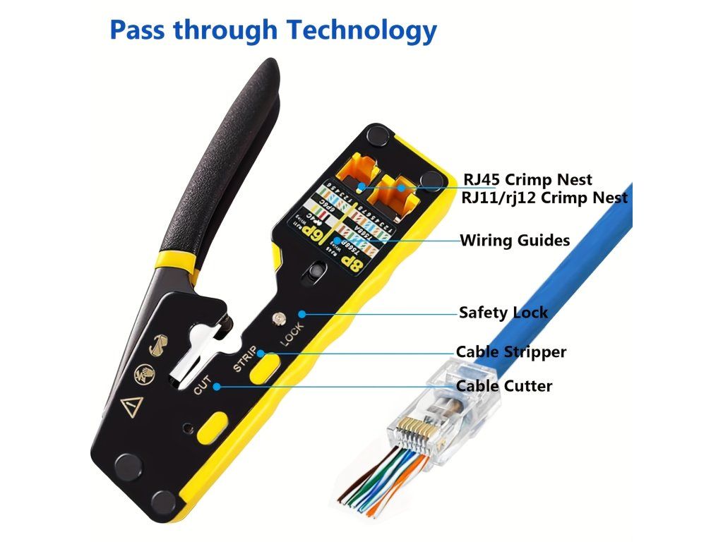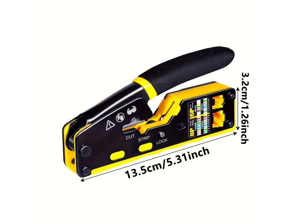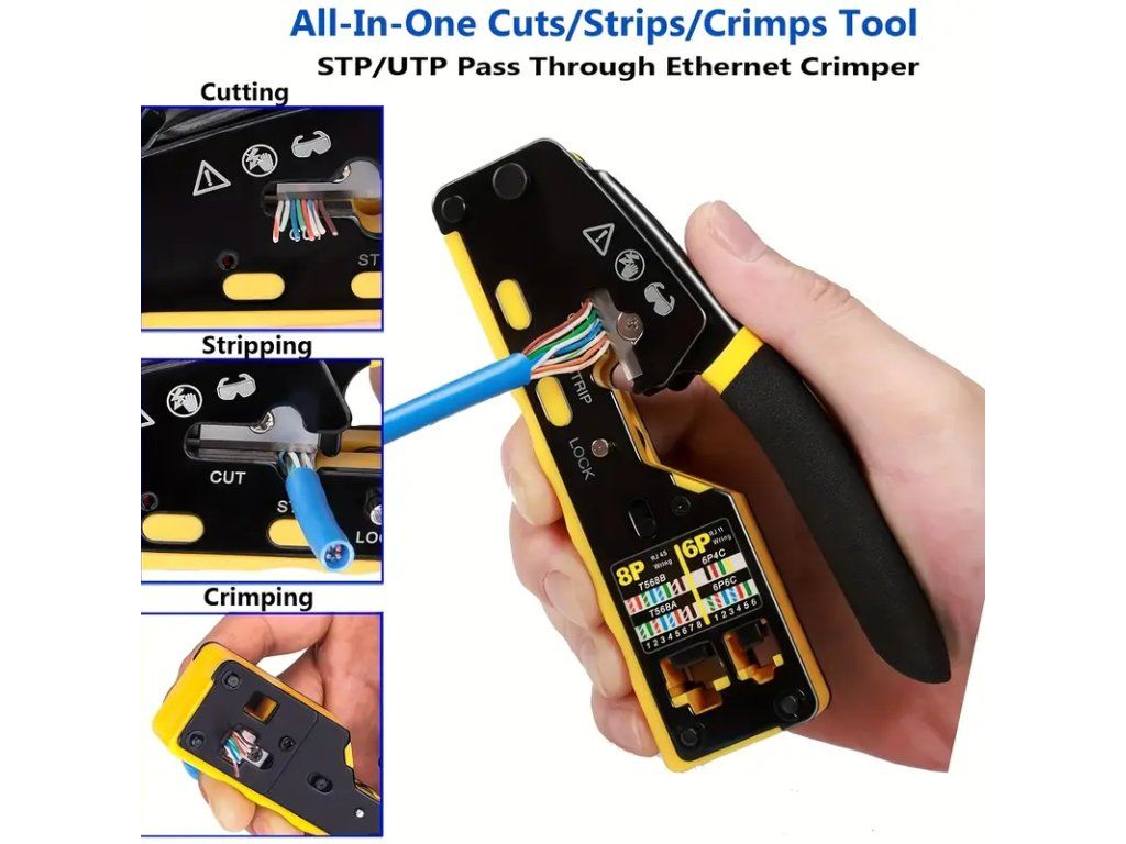 Krimpovací kleště jsou praktický nástroj pro tvorbu vlastních ethernetových kabelů (LAN) a telefonních kabelů. Umožňují odizolování kabelu, zkrácení drátků a bezpečné nalisování konektoru, včetně podpory průchozích (“pass-through”) konektorů, které usnadňují instalaci. Hlavní vlastnosti: Funkce: Odizolování kabelu, zkrácení drátků a nalisování konektoru. Technologie: Podpora pass-through konektorů pro snadnou instalaci. Kompatibilita: Vhodné pro konektory 8P8C (RJ45) a 6P (RJ11). Využití: Ideální pro vlastní ethernetové a telefonní kabely.Buďte první, kdo napíše příspěvek k této položce.