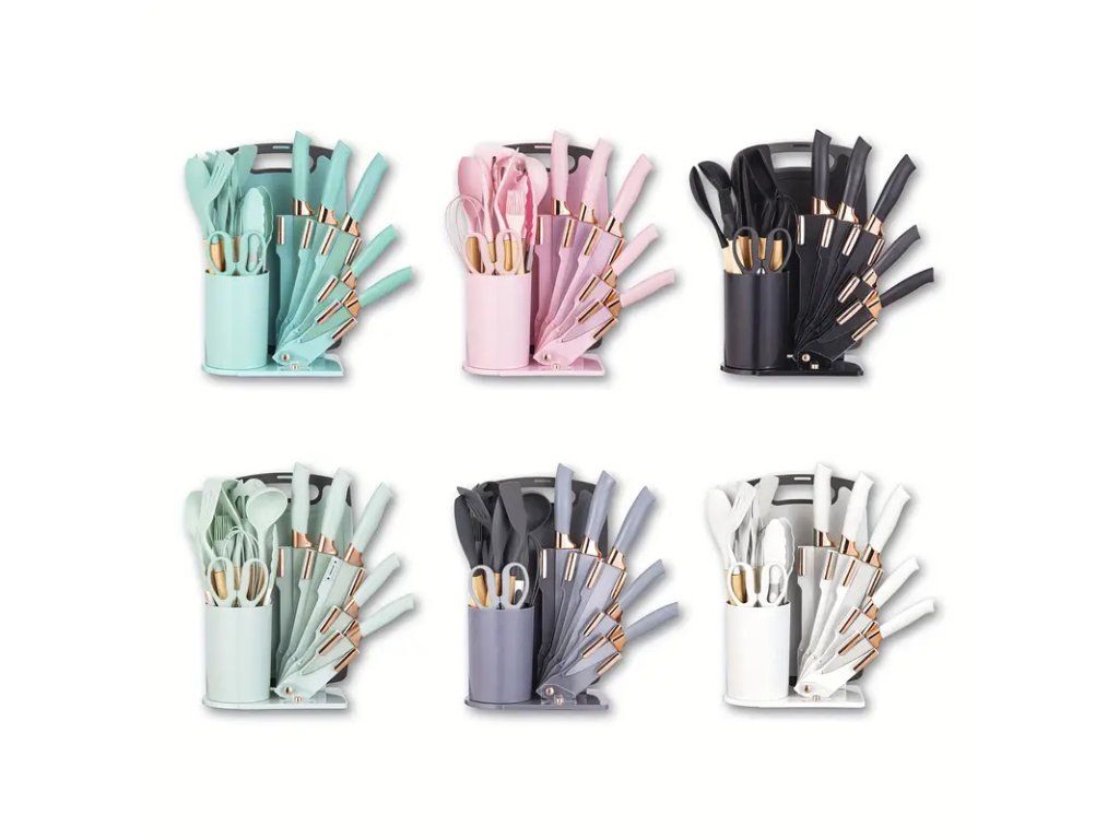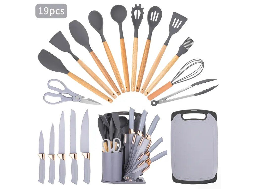 Kompletní 19dílná kuchyňská sada nožů a pomůcek navržena pro každodenní použití v domácí i profesionální kuchyni. Sada obsahuje univerzální kuchyňské nože s ergonomickými rukojeťmi, krájecí nůž, šéfkuchařský nůž, nůž na pečivo, nůž na zeleninu a menší nože na detailní práce. Součástí balení jsou také praktické pomůcky jako kuchyňské nůžky, loupák na zeleninu, řezací prkénko, ocílka pro udržení ostří a další nezbytnosti, které usnadní přípravu jídel. Nože jsou vyrobeny z kvalitní nerezové oceli odolné proti korozi a zachovávající ostrý řez. Ergonomické rukojeti zajišťují pevný a pohodlný úchop i při delším používání, minimalizují únavu ruky a zvyšují přesnost krájení. Ocílka pomáhá udržet optimální ostrost čepelí a prodlužuje jejich životnost. Sada je ideální pro domácí kuchaře i začínající profesionály, nabízí široké spektrum nástrojů pro krájení, sekání, loupání a přípravu surovin. Díky kompaktnímu balení a přehlednému uspořádání je snadné udržovat pořádek v kuchyni a mít všechny nástroje po ruce. Důraz na kvalitu zpracování a funkčnost zaručuje dlouhodobou spokojenost uživatelů. Doporučujeme pravidelnou údržbu – mytí ručně a občasné naostření – pro zachování nejlepších vlastností nožů. S touto 19dílnou sadou získáte spolehlivého partnera pro každodenní vaření a pečení.Buďte první, kdo napíše příspěvek k této položce.