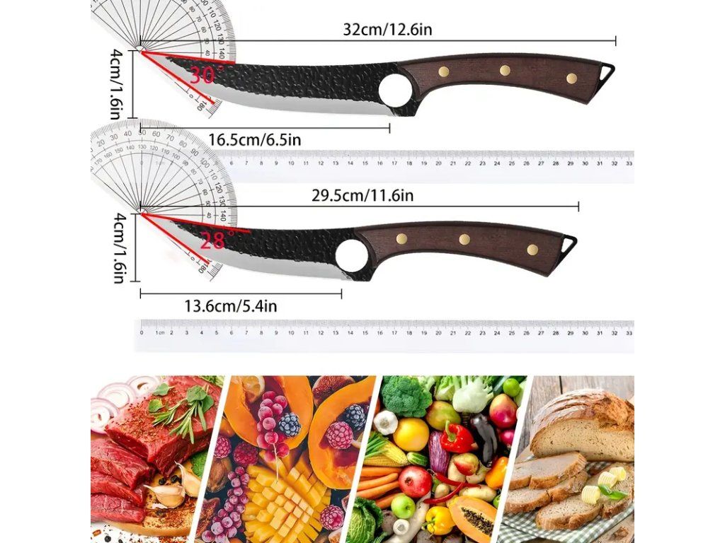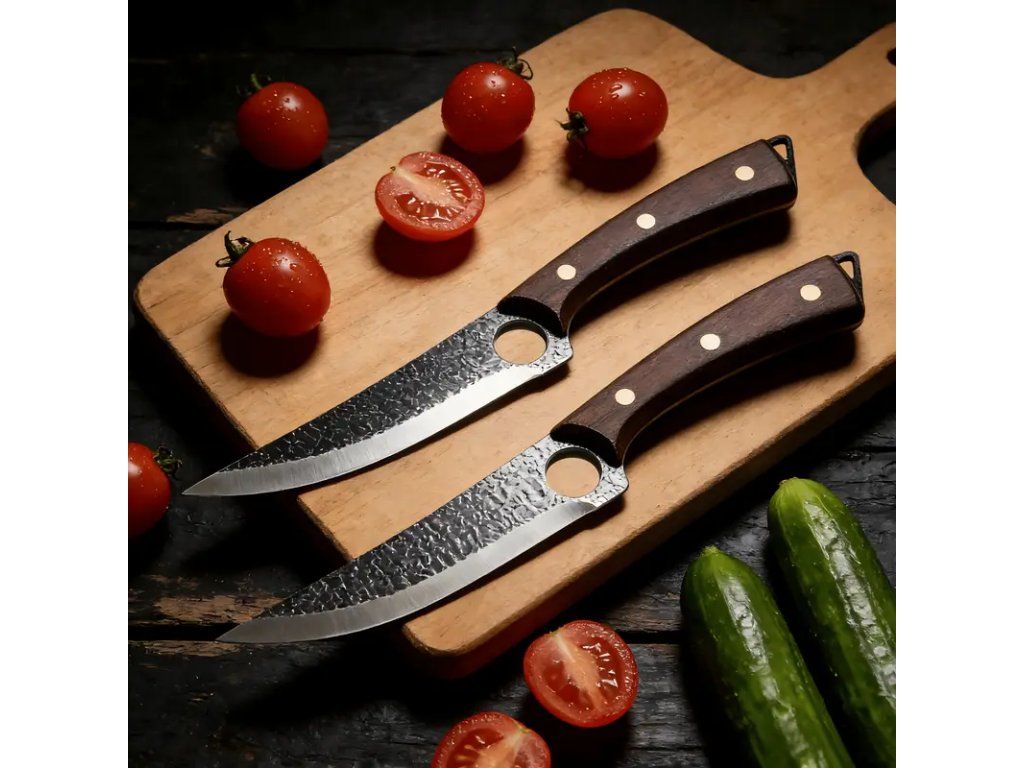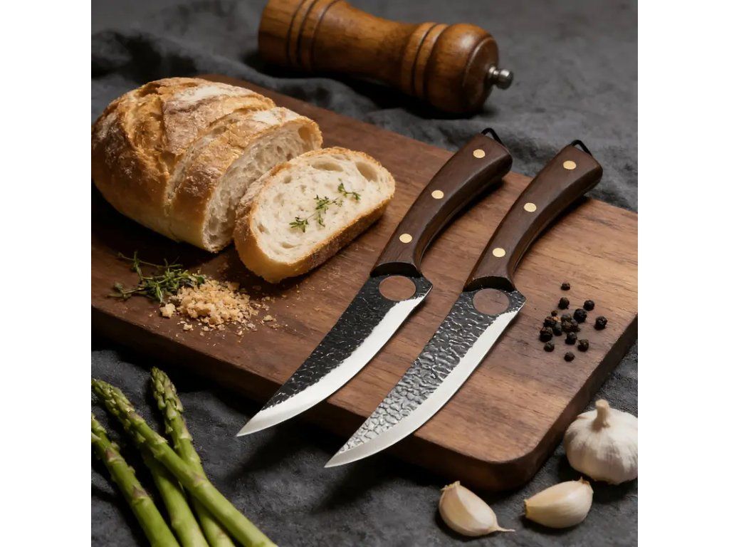 Sada kuchyňských nožů s kovanou čepelí a ergonomickou dřevěnou rukojetí představuje ideální volbu pro domácí i profesionální použití. Každý nůž je vyroben z kvalitní kované oceli, která zajišťuje dlouhou ostrost, odolnost vůči opotřebení a rovnoměrné rozložení tvrdosti po celé čepeli. Dřevěné rukojeti jsou ergonomicky tvarované pro pohodlný a jistý úchop, s příjemným povrchem, který snižuje únavu při opakovaném krájení. Sada obsahuje nože vhodné pro běžné kuchyňské úkony: univerzální šéfkuchařský nůž, nůž na pečivo, univerzální nůž na zeleninu/ovocí a menší nůž na krájení detailů. Každý kus je pečlivě vyvážen pro lepší kontrolu a bezpečnost při práci. Kované čepele poskytují vynikající ostří a snadnou údržbu – doporučuje se pravidelné broušení a ruční mytí, aby se zachovala kvalita dřeva i oceli. Sada je vhodná jako praktický doplněk domácí kuchyně i jako stylový dárek pro milovníky vaření. Kombinace tradičního kování a přirozené dřevěné rukojeti dodává nožům nadčasový vzhled a spolehlivý výkon po dlouhá léta.Buďte první, kdo napíše příspěvek k této položce.