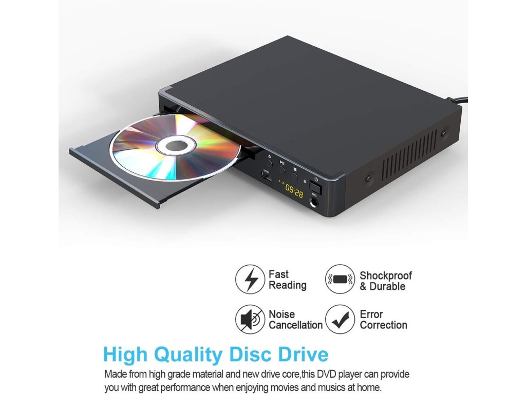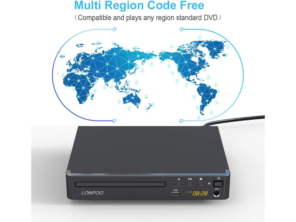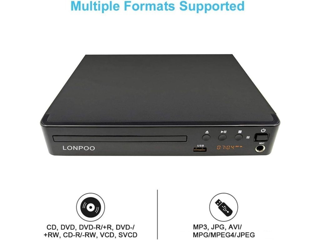 Hlavní vlastnosti: • Rozlišení: 1080p upscaling (Full HD) • Výstupy: HDMI, AV (RCA), koaxiální audio • Vstupy: USB 2.0, MIC (pro karaoke) • Podporované formáty: CD, DVD, DVD±R/RW, CD-R/RW, VCD, SVCD, MPEG4, DIVX • Region-Free: přehrává disky ze všech regionů (1–6, kromě CPRM/Japonsko) • TV systém: PAL / NTSC – automatické přepínání USB funkce: • Podpora USB flash disků do 32 GB • Přehrávání videí (max. 720p), hudby a obrázků • Nepodporuje USB 3.0 ani MP4 soubory Další funkce: • Paměť posledního přehrávání • Rychlé/pomalé přehrávání • CD ripping (kopírování hudby na USB) • Vícejazyčné OSD menu • Analogové audio výstupy 2.0Buďte první, kdo napíše příspěvek k této položce.