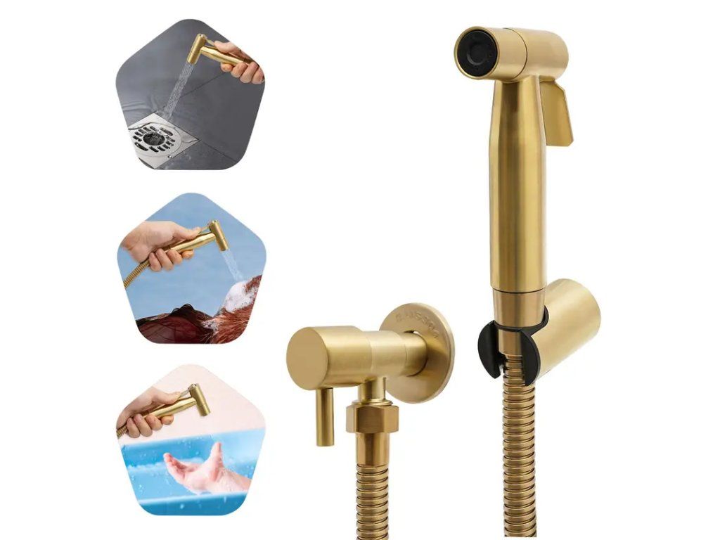 Luxusní zlatá bidetová sprcha přináší do koupelny kombinaci elegance, komfortu a praktického využití. Vyrobena z kvalitních materiálů s odolným zlatým povrchem, je navržena tak, aby odolávala každodennímu používání a současně zůstala estetickým doplňkem moderních i klasických interiérů. Ergonomické provedení rukojeti zajišťuje pohodlné držení a přesné ovládání proudu vody. Součástí balení jsou flexibilní hadice s kvalitními přípojkami pro snadnou instalaci na standardní vodovodní baterie nebo stávající bidetové přípojky. Bidetová sprcha nabízí plynulé nastavení tlaku vody, což umožňuje jemné i silnější proudy podle potřeby. Antikorozní konstrukce a snadno čistitelný povrch zaručují dlouhou životnost bez ztráty lesku. Díky kompaktním rozměrům je ideální řešení pro menší koupelny a toalety, kde není možné instalovat samostatný bidet. Produkt je vhodný pro osobní hygienu, péči o děti, důchodce nebo zvířata, a také jako praktický pomocník při úklidu koupelny. Nabízí diskrétní a hygienické řešení s minimální spotřebou vody. Technické parametry a kompatibilitu doporučujeme ověřit před instalací. V případě potřeby nabízíme technickou podporu a poradenství při výběru příslušenství.Buďte první, kdo napíše příspěvek k této položce.