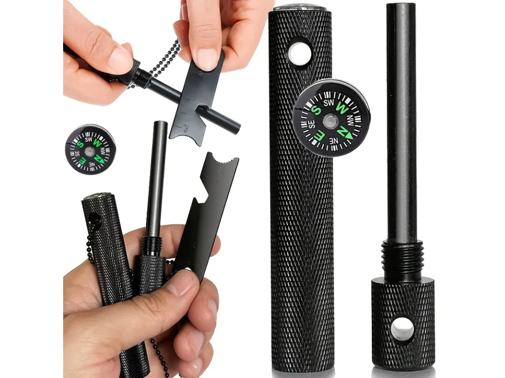 Magnesiové křesadlo 2v1 s kompasem je spolehlivý a odolný nástroj určený pro outdoorové aktivity, kempování, turistiku i nouzové situace. Kombinuje praktické křesadlo z magnesia pro rychlé zapálení ohně a vestavěný kompas pro základní orientaci v terénu. Konstrukce je navržena pro dlouhou životnost a snadné používání i v náročných podmínkách. Hlavní vlastnosti: - Křesadlo z magnesia umožňuje vytvářet intenzivní jiskry při minimálním úsilí, vhodné pro zapalování třísek, papíru nebo jiného paliva. - Integrovaný kompas poskytuje rychlou orientaci ve volné přírodě. - Odolné provedení s ergonomickým tvarem pro pevný úchop i v rukavicích. - Lehká a kompaktní konstrukce snadno schovaná do batohu nebo kapsy. - Vhodné pro použití za různých povětrnostních podmínek, včetně vlhka a větru. Použití a doporučení: Používejte křesadlo k zapalování podpaží, štěpin nebo jiného drobného paliva. Při zapalování dbejte na bezpečnost — udržujte vhodný odstup od hořlavých materiálů a mějte připravené prostředky pro uhašení ohně. Kompas slouží jako doplňkový navigační nástroj; pro přesnou navigaci doporučujeme kombinovat s mapou nebo GPS přístrojem. Technické poznámky: Křesadlo je navrženo pro opakované použití. Doporučujeme skladovat v suchu a čistit od nečistot pro dlouhodobou spolehlivost. Pokud produkt obsahuje vyměnitelný měděný nebo kovový drážkový prvek, postupujte podle přiložených pokynů při výměně nebo údržbě. Tento praktický 2v1 nástroj je ideální volbou pro každého, kdo hledá kompaktní a efektivní řešení pro zapalování ohně a základní orientaci v přírodě.Hodnocení produktu