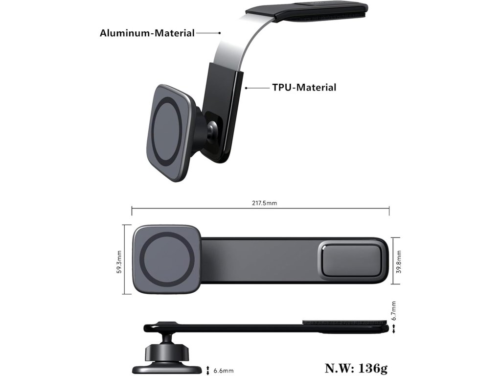 • Magnetické uchycení: silné magnety drží telefon bezpečně i při jízdě po nerovnostech • Ohebný krk: umožňuje nastavení úhlu podle potřeby, ideální pro navigaci nebo handsfree hovory • Montáž: připevnění na palubní desku pomocí lepicí základny nebo přísavky • Kompatibilita: vhodný pro většinu smartphonů s kovovým plíškem nebo magnetickým pouzdrem • Použití: v autě, ale i doma nebo v kanceláři jako stojánekDoplňkové parametry