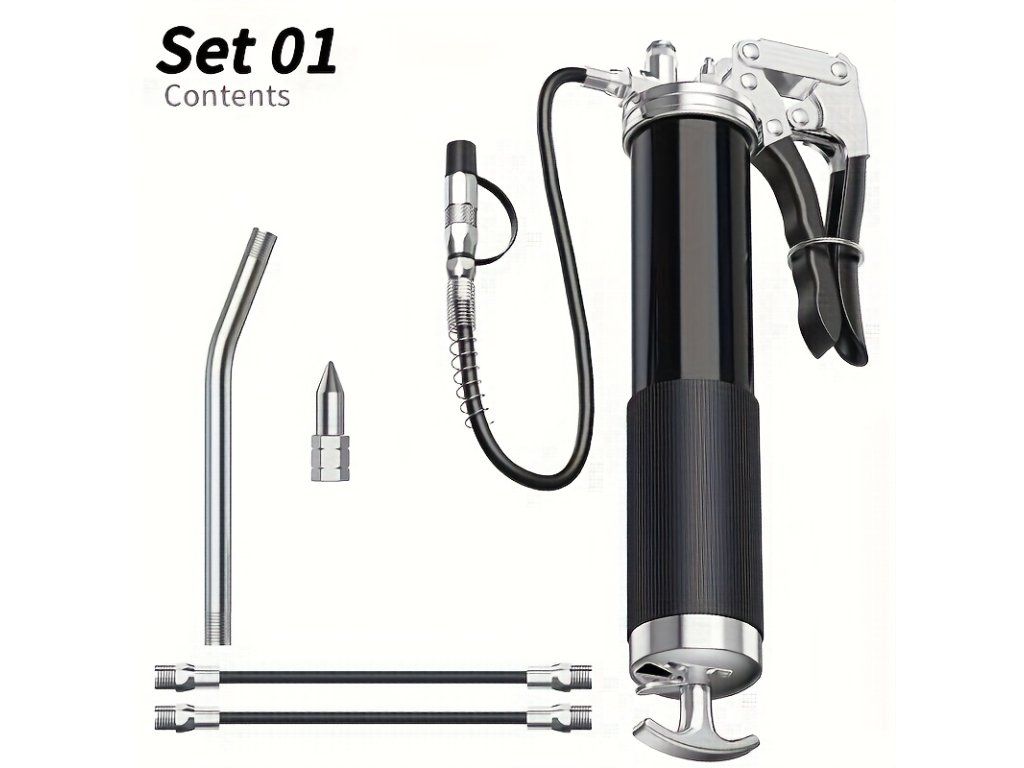 Mazací lis VEVOR s pistolovou rukojetí je určen pro aplikaci maziva při údržbě strojů a mechanických zařízení. Lis dosahuje maximálního tlaku 6000 PSI (cca 413 bar), což umožňuje efektivní mazání i při vyšším zatížení. Lze jej použít s kartuší o objemu 14 oz (400 cc) nebo s volným mazivem. Součástí balení je flexibilní hadice, ohnutá kovová trubka a různé trysky pro snadnou aplikaci maziva i na hůře přístupná místa. Ergonomická pistolová rukojeť umožňuje pohodlné ovládání jednou rukou. Specifikace • Typ: mazací lis (pistolový) • Maximální tlak: 6000 PSI (cca 413 bar) • Objem: 14 oz (400 cc) • Použití: kartuše i volné mazivo • Příslušenství: flexibilní hadice (~45 cm), kovová trubka, trysky • Ovládání: jednoruční, ergonomická rukojeťBuďte první, kdo napíše příspěvek k této položce.