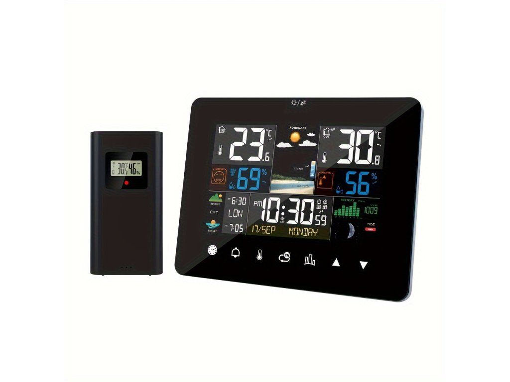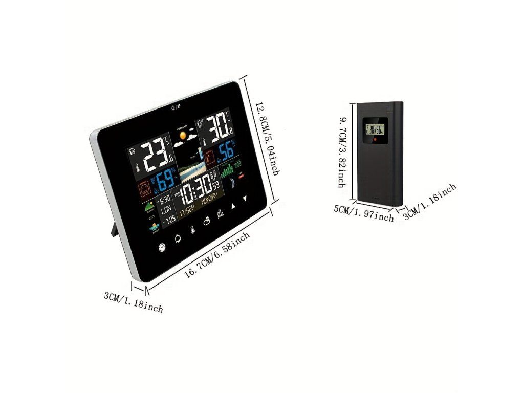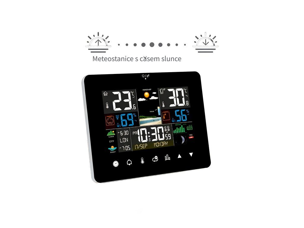 Multifunkční meteostanice zobrazuje aktuální informace o počasí a podmínkách v interiéru i exteriéru. Velký LCD displej přehledně ukazuje vnitřní a venkovní teplotu, vlhkost vzduchu, předpověď počasí, čas, datum, fáze měsíce a časy východu a západu slunce. Zařízení disponuje dotykovým ovládáním a funkcí budíku s opakovaným buzením. Součástí je bezdrátový venkovní senzor pro měření venkovních hodnot. Meteostanici lze napájet pomocí síťového adaptéru nebo baterií. Specifikace: Typ: meteostanice Displej: LCD, dotykové ovládání Funkce: teplota, vlhkost, předpověď počasí, čas, datum Další funkce: fáze měsíce, východ a západ slunce, budík Senzor: bezdrátový venkovní Napájení: adaptér nebo baterieBuďte první, kdo napíše příspěvek k této položce.