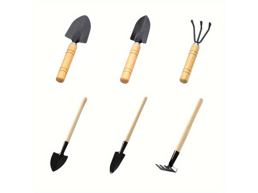 Mini zahradní nářadí 6 kusů sada – lopatka, hrábě, rýček