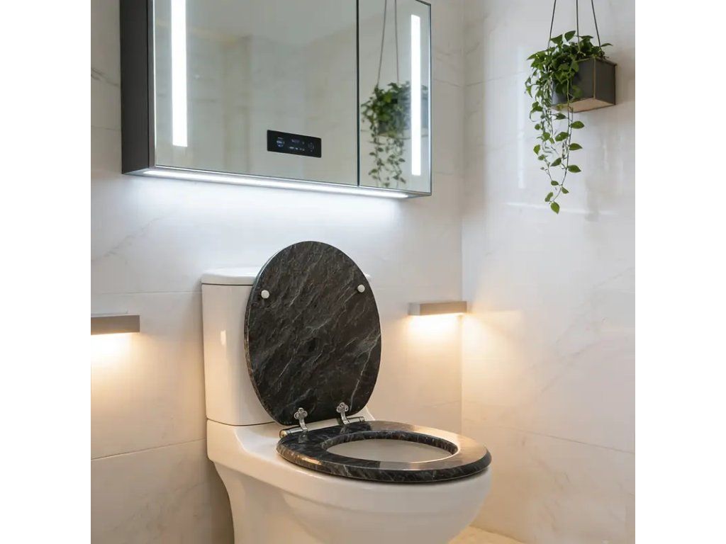 Elegantní mramorové WC sedátko přináší do koupelny kombinaci stylu a pohodlí. Vyrobené z kvalitního materiálu s realistickým mramorovým vzorem nabízí odolný povrch vůči opotřebení a snadnou údržbu. Ergonomický tvar sedátka zajišťuje komfort při používání, zatímco pevné kovové panty zaručují stabilitu a dlouhou životnost. Povrch je hladký a odolný vůči skvrnám, proto stačí běžné čisticí prostředky bez agresivních abrazivních složek. Mramorové provedení dodá toaletě luxusní a nadčasový vzhled, který se hodí jak do moderních, tak klasických interiérů. Sedátko je navrženo pro univerzální montáž na většinu standardních toaletních mís. Jednoduchá instalace umožňuje rychlé upevnění i výměnu stávajícího sedátka. Díky pevnému konstrukčnímu provedení a kvalitním pantům je minimalizováno houpání a hlasité skřípání. Ideální volba pro zákazníky, kteří hledají estetické řešení bez kompromisu na funkčnosti. Sedátko spojuje odolnost, pohodlí a snadnou údržbu v jednom produktu, který okamžitě oživí vzhled vaší koupelny.Buďte první, kdo napíše příspěvek k této položce.