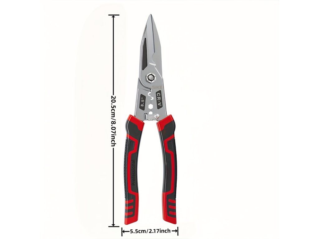 Multifunkční kleště 9v1 jsou robustní a univerzální nástroj určený pro práci s plechem i kabely. Kombinují funkce řezání plechu, stříhání drátů a odizolování kabelů v jednom přístroji, což šetří čas a místo ve vaší sadě nářadí. Díky konstrukci z chrom-vanadiové oceli (Cr-V) jsou kleště odolné a dlouhodobě spolehlivé. Hlavní vlastnosti: Materiál: Chrom-vanadiová ocel (Cr-V) pro vysokou pevnost a dlouhou životnost. Funkčnost: 9v1 – řezání plechu, stříhání drátů, odizolování kabelů a další. Čepele: Ostré a hladké pro přesné řezy, vhodné pro plech do šířky 8,5 palce. Použití: Průmyslové i domácí, zejména pro práce s kovem a elektroinstalací.Buďte první, kdo napíše příspěvek k této položce.