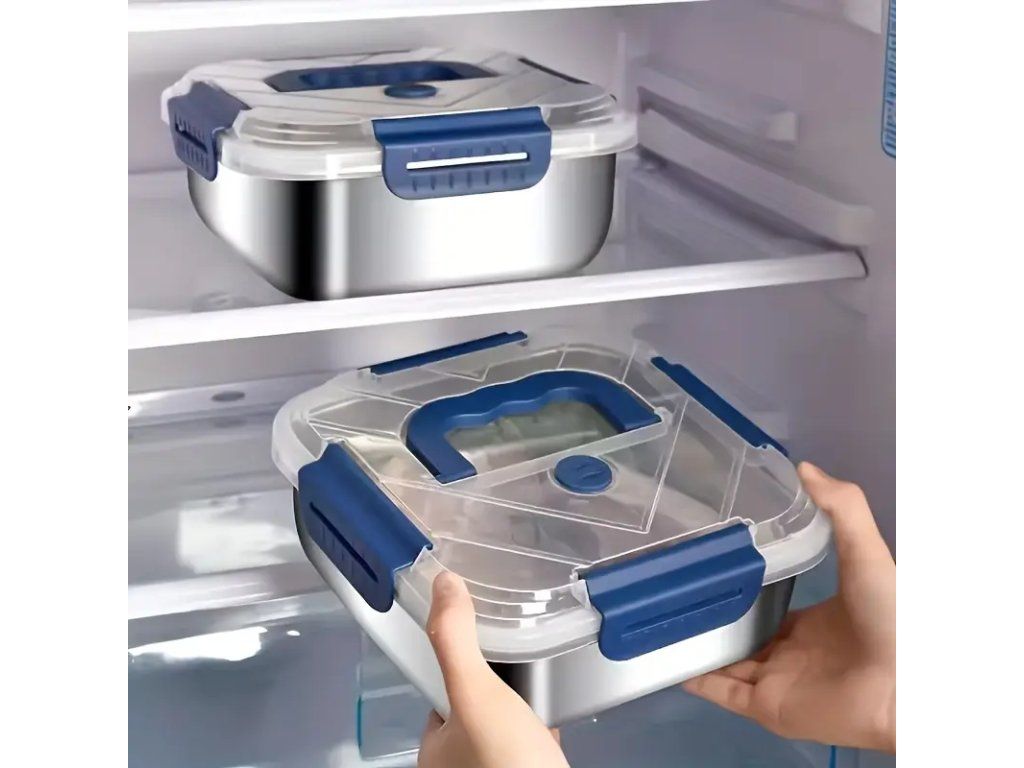 Sada 4 kusů nerezových nepropustných krabiček na potraviny s modrým víkem představuje praktické a odolné řešení pro skladování, přepravu i uchování čerstvosti potravin. Krabičky jsou vyrobeny z kvalitní nerezové oceli, která je odolná proti korozi, snadno se čistí a dlouhodobě udržuje hygienickou čistotu. Pevné modré víko s těsněním zajišťuje nepropustnost a chrání obsah před vlhkostí, zápachem či vytečením. Díky různým velikostem v sadě získáte flexibilitu pro skladování malých i větších porcí – ideální pro připravované obědy, zbytky jídel, čerstvé ovoce, zeleninu nebo sušené potraviny. Krabičky jsou vhodné pro použití doma, v kanceláři i při cestování; lze je rovněž snadno stohovat, čímž šetří místo v lednici nebo spíži. Materiál je bezpečný pro styk s potravinami a neovlivňuje chuť ani vůni uloženého jídla. Krabičky jsou snadno udržovatelné – lze je mýt ručně i v myčce (ověřte doporučení výrobce pro víka). Díky pevné konstrukci a kvalitnímu provedení jsou vhodné pro každodenní používání a představují dlouhodobou investici do organizace kuchyně. Sada 4 ks nerezových nepropustných krabiček s modrými víky nabízí kombinaci funkčnosti, odolnosti a estetického provedení, které oceníte při každodenním skladování potravin.Buďte první, kdo napíše příspěvek k této položce.