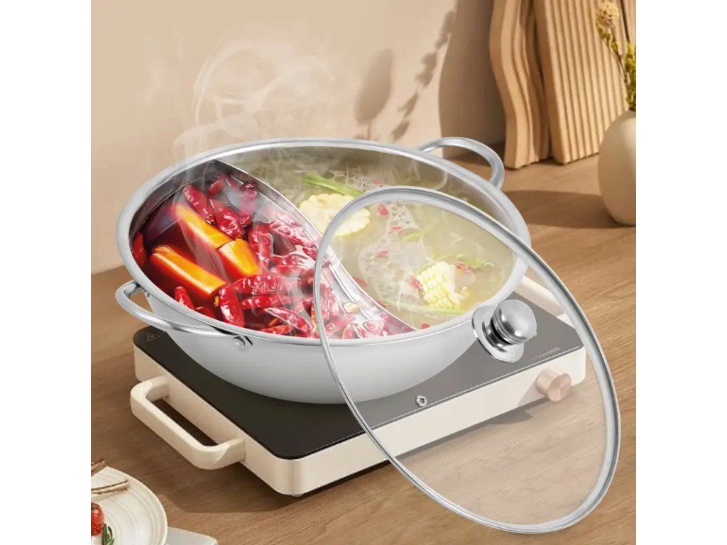 Nerezový hotpot hrnec o průměru 28 cm s oddělenou miskou je praktický a odolný kuchyňský pomocník určený pro přípravu hotpotu, fondue i společného stolování. Vyroben z kvalitní nerezové oceli, která zajišťuje dlouhou životnost, snadnou údržbu a hygienické vaření bez absorpce pachů. Hrnec disponuje prostornou hlavní nádobou pro vývar a samostatnou vložkou/miskou pro vaření masa, zeleniny nebo omáček, což umožňuje současné přípravy více ingrediencí bez míchání chutí. Robustní konstrukce a pevné uchycení rukojetí zvyšují bezpečnost při manipulaci, vhodný pro použití na každodenní vaření i při společenských událostech. Hladký povrch usnadňuje čištění — je možné mýt v myčce (ověřte doporučení výrobce). Univerzální velikost 28 cm poskytuje dostatek prostoru pro 3–6 osob podle způsobu servírování. Tento nerezový hotpot je ideální volbou pro ty, kdo hledají kombinaci funkčnosti, odolnosti a elegantního designu do moderní kuchyně.Buďte první, kdo napíše příspěvek k této položce.
