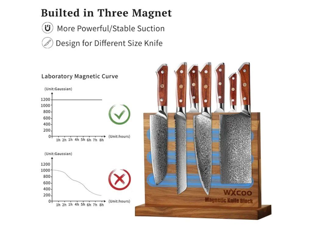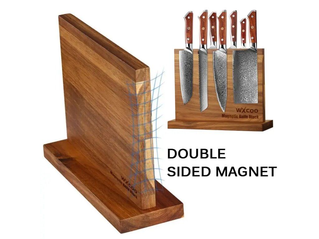 Oboustranný dřevěný magnetický blok na nože představuje elegantní a praktické řešení pro bezpečné uložení kuchyňských nožů. Pevná dřevěná konstrukce s jemným povrchem dodává kuchyni přírodní a nadčasový vzhled, zatímco vestavěné magnety zajišťují spolehlivé uchycení čepelí různé velikosti. Díky oboustrannému provedení lze využít obě strany pro maximální kapacitu a přehlednost uskladnění, což šetří místo na pracovní ploše i v zásuvkách. Blok je navržen pro jednoduchou montáž na stěnu nebo upevnění na hraně pracovní desky (v závislosti na modelu), což umožňuje flexibilní umístění podle vašich potřeb. Dřevo je ošetřeno odolným nátěrem, který chrání před vlhkostí a usnadňuje údržbu; stačí otřít vlhkým hadříkem. Magnety jsou bezpečně ukryty v těle dřeva, aby nedocházelo ke styku s ostrými hranami nožů a zároveň minimalizovaly opotřebení čepelí. Tento magnetický blok je ideální volbou pro domácí kuchaře i profesionály, kteří ocení kombinaci bezpečnosti, dostupnosti nástrojů a estetického dojmu. Dodává se v neutrálním designu, který snadno ladí s různými styly kuchyní. Před instalací zkontrolujte vhodné umístění tak, aby byly nože mimo dosah dětí a zároveň pohodlně dostupné při vaření.Buďte první, kdo napíše příspěvek k této položce.