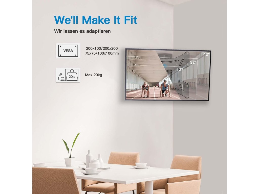 • Vhodné pro TV a monitory s úhlopříčkou 13–42” • Maximální zatížení: 20 kg • VESA standardy: 75×75, 100×100, 200×100, 200×200 mm • Kompatibilní s LED, LCD, OLED obrazovkami Pohyblivost: • Otočení: ±90° do stran • Náklon: +5° / −15° pro snížení odlesků • Vysunutí od zdi: 69 mm až 362 mm • Rotace: není uvedena (pravděpodobně bez rotace) Materiál: • Těžká ocelová konstrukce (slitina hliníku a oceli) • Automatizované svařování pro pevnost a čistý vzhled • Barva: černáBuďte první, kdo napíše příspěvek k této položce.