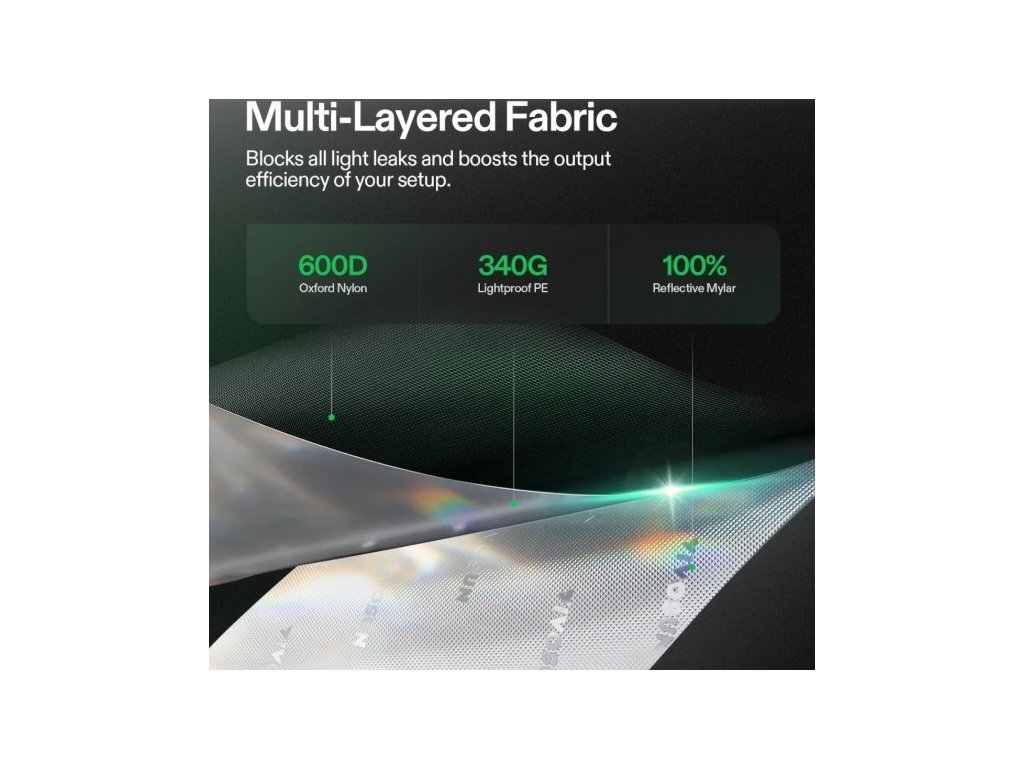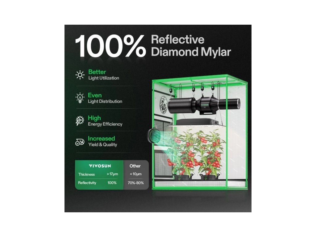Vysoce kvalitní pěstební stan značky VIVOSUN vhodný pro vnitřní pěstování rostlin, bylinek nebo zeleně. Tento stan poskytuje světlotěsný a kontrolovaný prostor pro růst rostlin. Ideální pro 1–2 rostliny. Technické parametry: Rozměry: 81 × 81 × 160 cm (šířka × délka × výška) Konstrukce: pevný rám z ocelových tyčí a stabilní spojky Materiál: 600D Oxford tkanina s proti světelnou vrstvou Vnitřní povrch: 100 % reflexní Mylar pro efektivní využití světla Přístup: velké zipové dveře pro snadný přístup Ventilační otvory: připravené vstupy pro ventilaci, kabely a potrubí Okno: průhledné okno pro kontrolu rostlin bez narušení prostředí Výhody: Vytváří kontrolované prostředí (světlo, teplota, vlhkost) Snadná montáž bez nářadí Možnost rozšíření o světla, ventilaci a další příslušenství Stav: úplně nový, originál zabalený, tyče vakuově zatavené. Tento model je ideální jako samostatný pěstební stan, pokud nepotřebuješ kompletní set s LED světly a ventilací – poskytuje pevný a reflektivní prostor pro rostliny a může být později doplněn o další vybavení.Doplňkové parametry