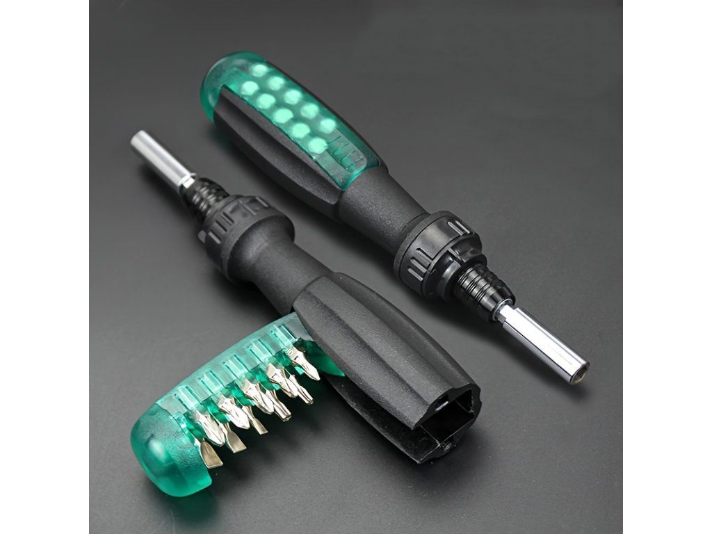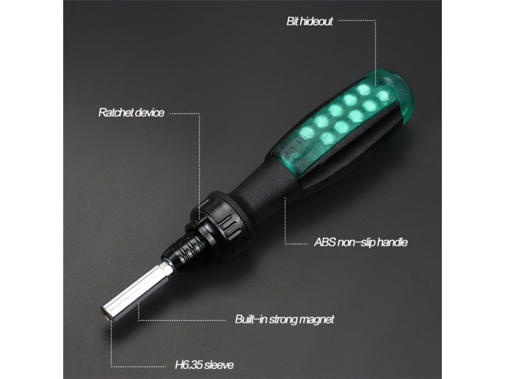 Ráčnový šroubovák se sadou bitů a magnetickým držákem