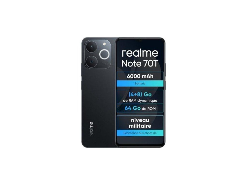 Smartphone Realme Note 70T v černé barvě nabízí vysokou odolnost dlouhou výdrž baterie a dostatečný výkon pro každodenní používání Je ideální volbou pro uživatele kteří hledají spolehlivý telefon s velkou baterií Výkon 12 GB RAM včetně virtuální paměti 64 GB úložiště pro aplikace a data plynulý chod systému pro běžné používání Baterie kapacita 6000 mAh dlouhá výdrž na jedno nabití vhodné na cestování i náročnější použití Odolnost zvýšená odolnost proti nárazům certifikace IP54 proti prachu a stříkající vodě pevná konstrukce pro každodenní použití Využití telefonování a internet sociální sítě a aplikace sledování videí práce i zábavaBuďte první, kdo napíše příspěvek k této položce.