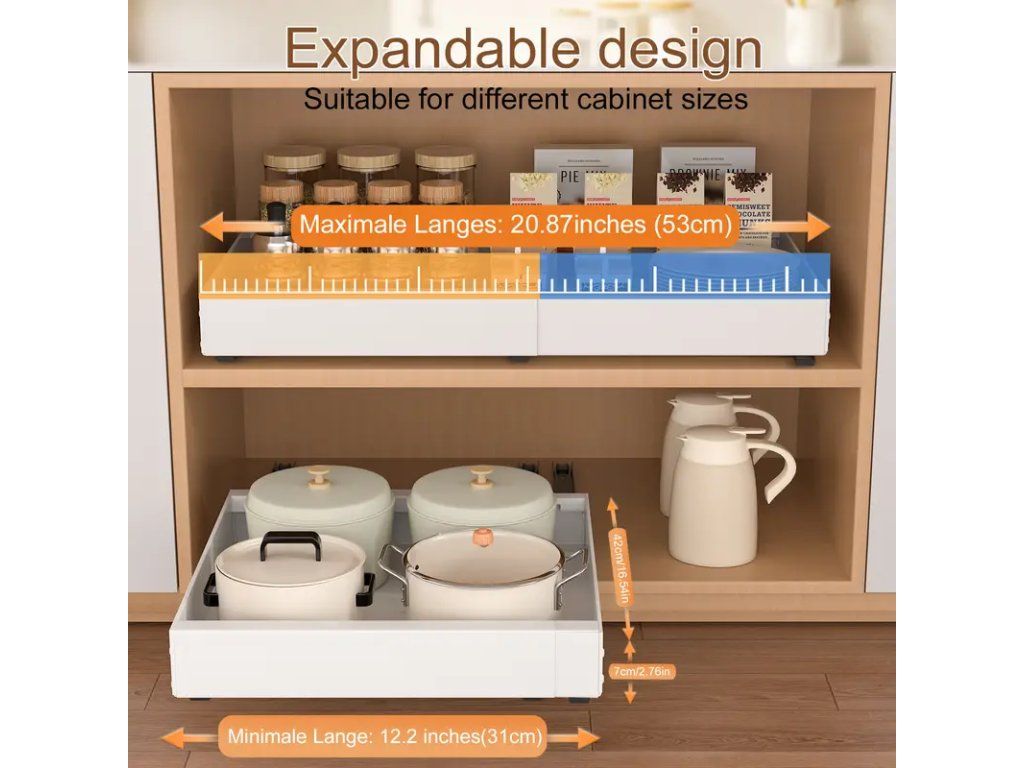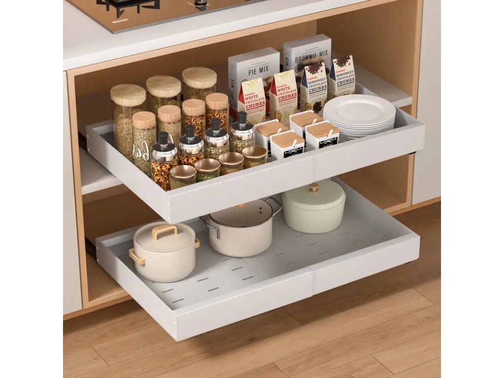 Praktický rozšiřitelný organizér do kuchyňské skříňky – sada 2 kusů. Tento univerzální pomocník pomáhá udržet pořádek v policích a maximálně využít dostupný prostor. Organizér je nastavitelný v rozsahu 32–53 cm, díky čemuž snadno přizpůsobíte jeho šířku rozměrům vaší skříňky. Robustní konstrukce z odolného materiálu zajišťuje stabilitu při ukládání nádobí, potravinových dóz nebo kuchyňských doplňků. Jednoduchá montáž a nastavení bez použití nářadí umožní rychlé umístění do požadované pozice. Díky elegantnímu neutrálnímu provedení se organizér hodí do většiny kuchyňských interiérů. V balení jsou dva kusy, které poskytují flexibilní řešení pro více polic nebo pro rozšíření úložné kapacity v jedné skříňce. Ideální volba pro zlepšení přehlednosti a organizace v kuchyni.Buďte první, kdo napíše příspěvek k této položce.