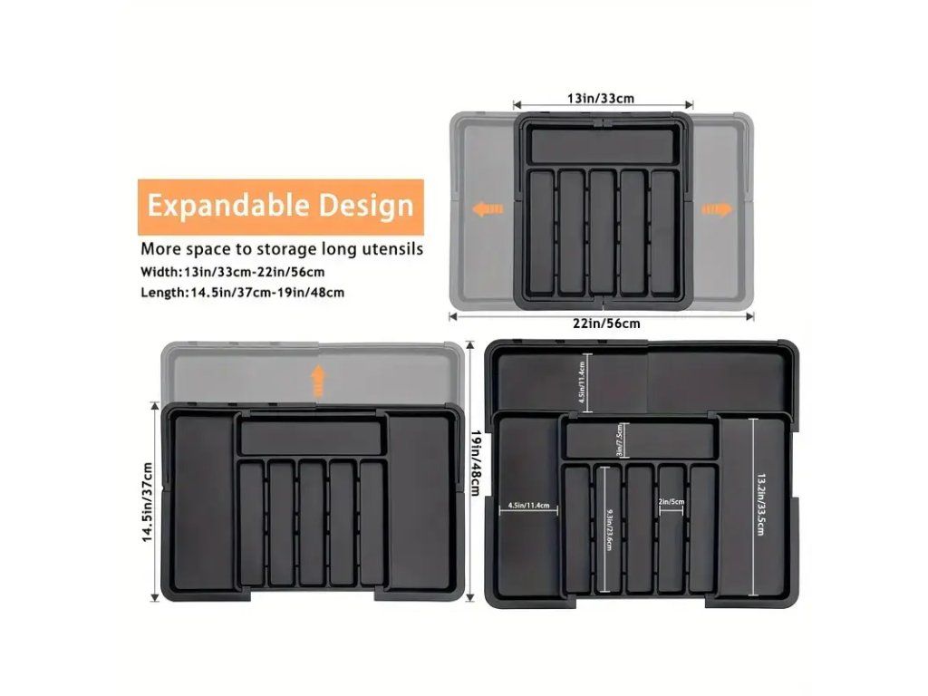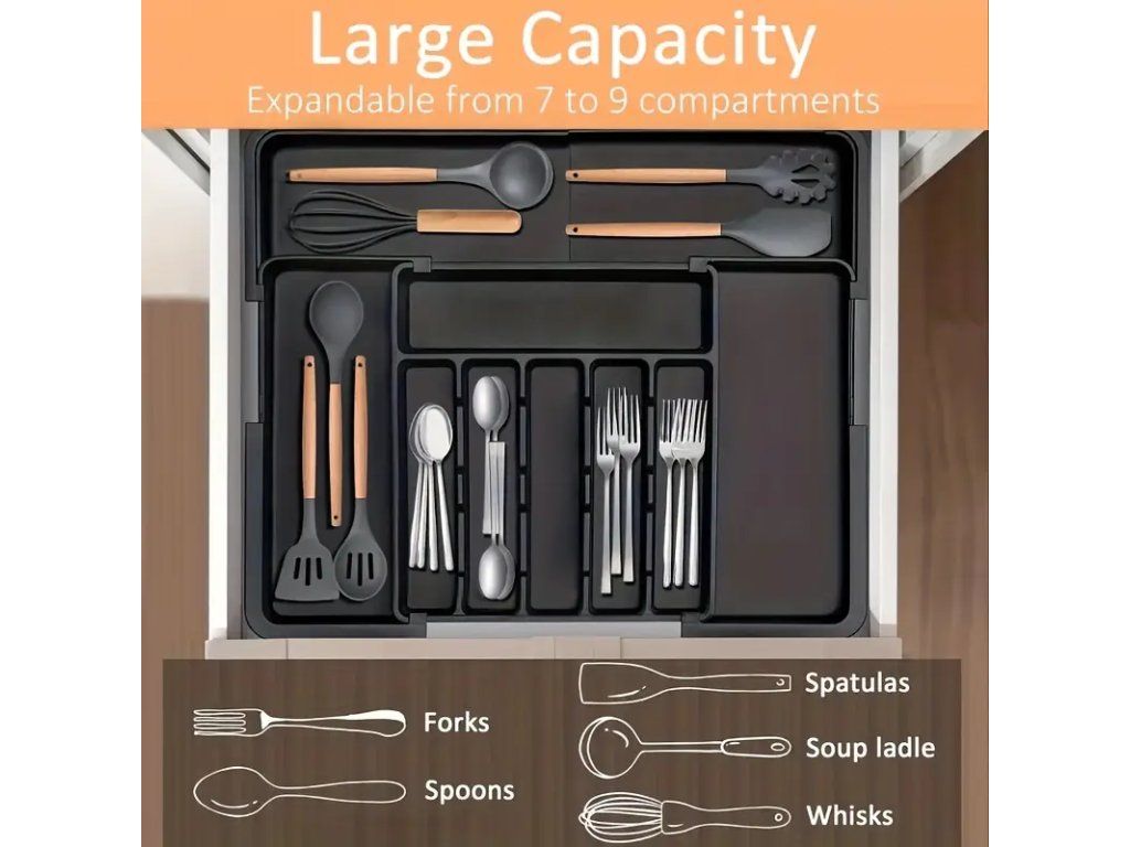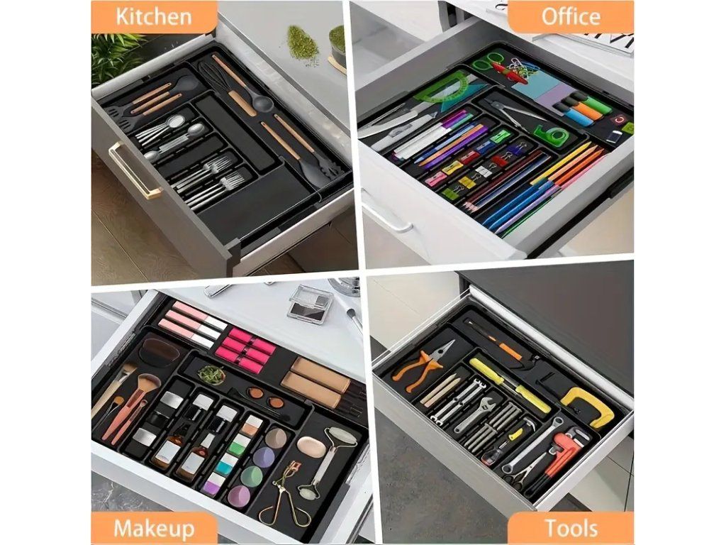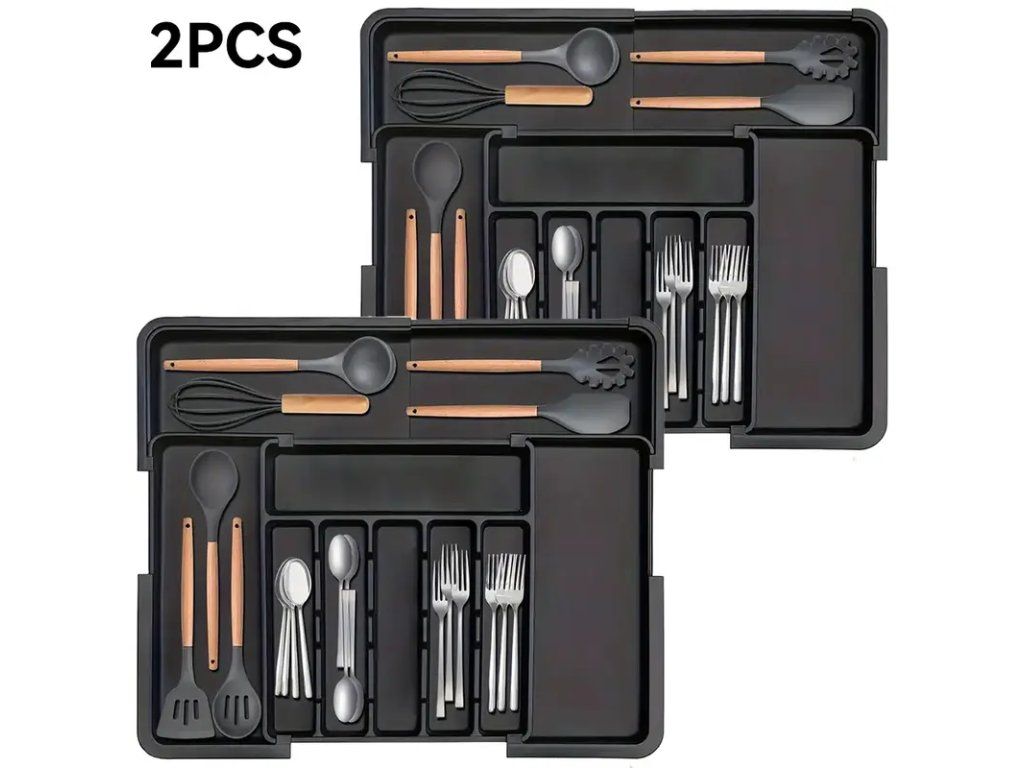 Praktický rozšiřitelný organizér na kuchyňské náčiní – sada 2 ks, navržená pro efektivní uspořádání a úsporu místa v kuchyni. Organizér je snadno přizpůsobitelný šířce zásuvek nebo pracovní plochy díky roztažitelné konstrukci, což umožňuje jeho použití v různých typech kuchyňských skříněk, na pracovních deskách nebo v potravinových skříňkách. Pevné dělení zabraňuje poskakování náčiní při otevírání zásuvek a udržuje vařečky, špachtle, nože, metly a další nástroje přehledně oddělené. Vyroben z odolného materiálu odolávajícího běžnému opotřebení a snadno omyvatelného vlhkým hadříkem. Ergonomický design a neutrální barva se hodí do většiny kuchyňských interiérů. Díky kompaktnímu balení a nízké hmotnosti je instalace rychlá a bez nutnosti nářadí — stačí organizér roztáhnout na požadovanou šířku a umístit na místo. Vhodné pro domácnosti, pronájmy i profesionální kuchyně, kde je potřeba udržet pořádek a rychlý přístup k náčiní. Sada 2 kusů umožňuje organizaci více zón najednou nebo použití v různých částech kuchyně.Buďte první, kdo napíše příspěvek k této položce.