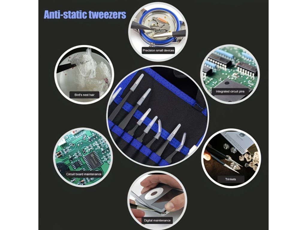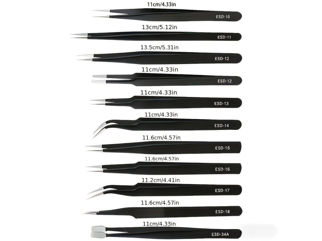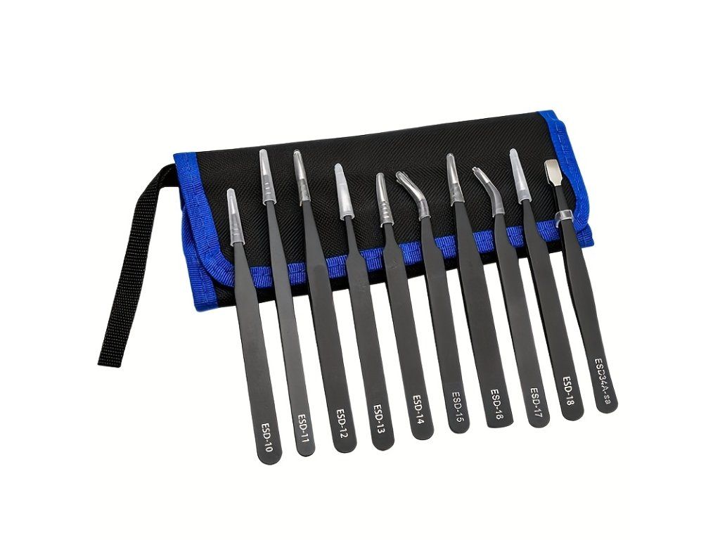 Sada antistatických pinzet ESD je určena pro přesnou práci s elektronikou a jemnými součástkami. Sada obsahuje pinzety různých tvarů a velikostí (např. ESD-10 až ESD-18 a ESD34A-sa), které mají různé typy hrotů – rovné, zahnuté i ploché – pro široké spektrum použití. Pinzety jsou vyrobeny z nerezové oceli s antistatickou úpravou, která zabraňuje elektrostatickému výboji a chrání citlivé elektronické komponenty před poškozením. Zároveň jsou odolné vůči teplu a opotřebení. Sada je dodávána v praktickém pouzdře pro přehledné uspořádání a snadné přenášení. Specifikace • Typ: antistatické pinzety (ESD) • Obsah: různé tvary a velikosti (např. ESD-10 až ESD-18, ESD34A-sa) • Materiál: nerezová ocel • Vlastnosti: antistatická úprava, odolnost vůči teplu • Hroty: rovné, zahnuté, ploché • Použití: práce s elektronikou a jemnými součástkami • Balení: pouzdroBuďte první, kdo napíše příspěvek k této položce.