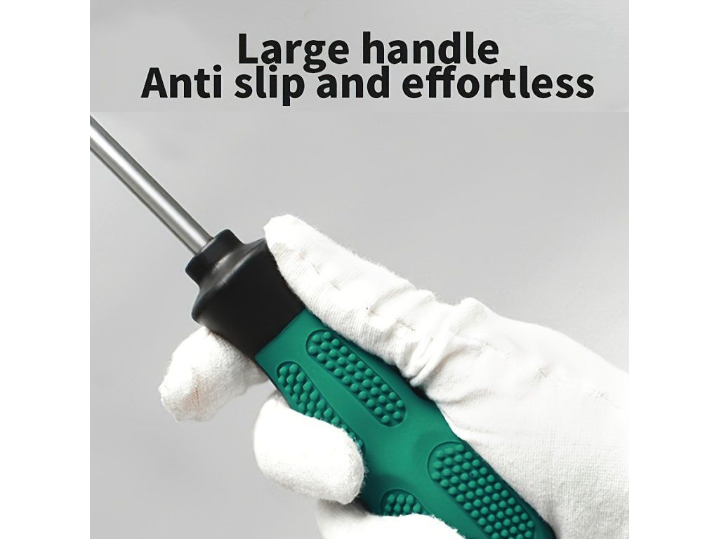 Sada dvou dlouhých šroubováků je určena pro práci v hůře přístupných nebo hlubokých místech. Šroubováky jsou vyrobeny z odolné chrom-vanadiové oceli, která zajišťuje pevnost a dlouhou životnost. Jsou vybaveny magnetickými hroty pro snadnější manipulaci se šrouby. Ergonomické protiskluzové rukojeti umožňují pohodlný a jistý úchop při práci. Sada obvykle obsahuje jeden plochý a jeden křížový (Phillips) šroubovák. Specifikace • Typ: šroubováky (plochý + křížový) • Balení: 2 ks • Materiál: chrom-vanadiová ocel • Vlastnosti: magnetické hroty • Rukojeť: ergonomická, protiskluzová • Použití: práce v hlubokých a hůře dostupných místechBuďte první, kdo napíše příspěvek k této položce.
