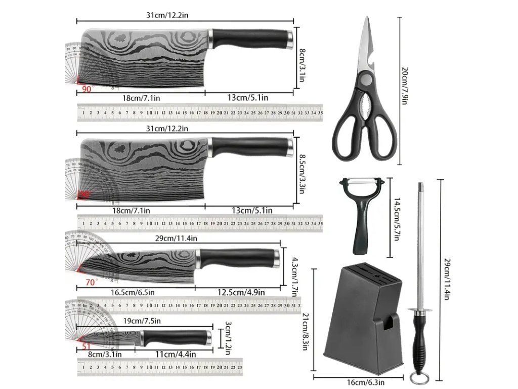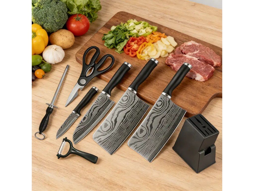 Sada kuchyňských nožů s příslušenstvím je navržena tak, aby uspokojila běžné i náročnější potřeby domácí kuchyně. Souprava obsahuje nože různých velikostí a typů pro krájení, porcování, filetování a loupání, doplněné o praktické příslušenství, které zjednodušuje přípravu jídel i údržbu nástrojů. Čepele jsou vyrobeny z kvalitní nerezové oceli odolné proti korozi a zajišťují dlouhotrvající ostrost. Ergonomické rukojeti poskytují pohodlný a bezpečný úchop i při delším používání. Součástí sady je také stojan nebo blok pro přehledné a bezpečné uložení nožů, ocílka nebo brousek pro udržení ostrosti a ochranné kryty čepelí pro bezpečné přenášení. Design kombinuje funkčnost a elegantní vzhled, který dobře zapadne do moderní i klasické kuchyně. Tato sada je vhodná jak pro každodenní použití, tak jako praktický dárek pro milovníky vaření.Buďte první, kdo napíše příspěvek k této položce.