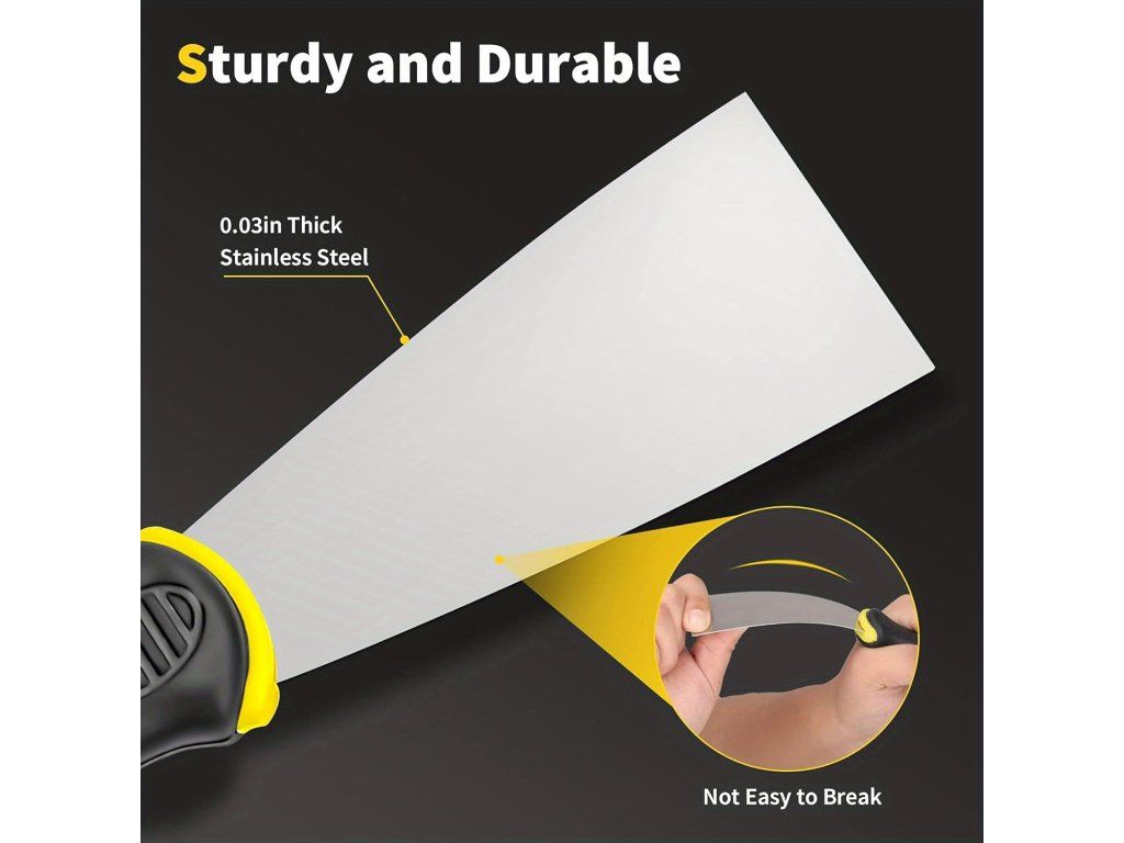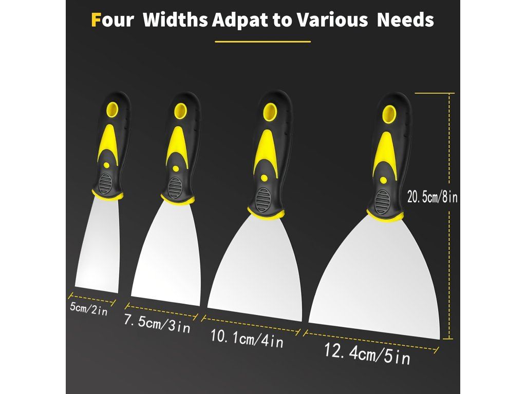 Sada nerezových špachtlí obsahuje 4 kusy nástrojů různých šířek, které jsou vhodné pro široké spektrum prací. Špachtle lze využít pro nanášení tmelu, stěrkování, škrábání barev nebo jiné stavební a kutilské práce. Různé velikosti umožňují přizpůsobení konkrétním potřebám při práci. Špachtle jsou vyrobeny z nerezové oceli, která zajišťuje odolnost a dlouhou životnost. Ergonomické rukojeti umožňují pohodlný a pevný úchop. Specifikace: Typ: špachtle Balení: 4 ks Materiál: nerezová ocel Šířky: 5 cm, 7,5 cm, 10,1 cm, 12,4 cm Délka: cca 20,5 cm Použití: tmel, barvy, stěrkování, škrábáníBuďte první, kdo napíše příspěvek k této položce.