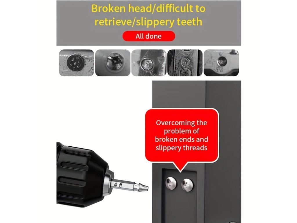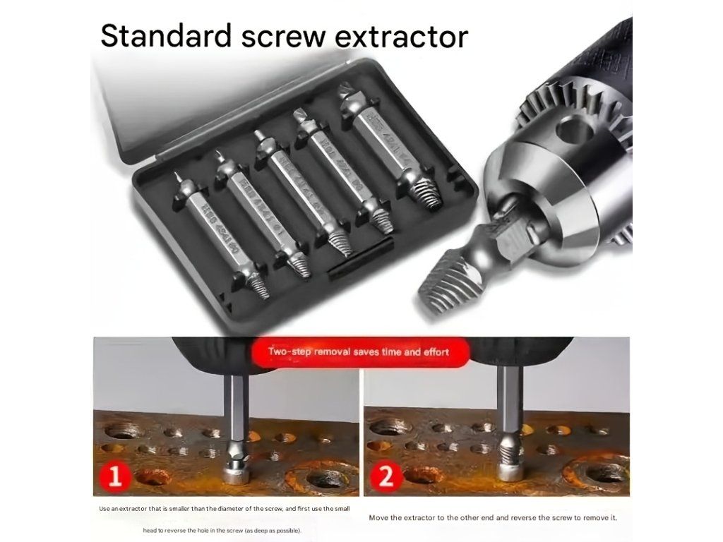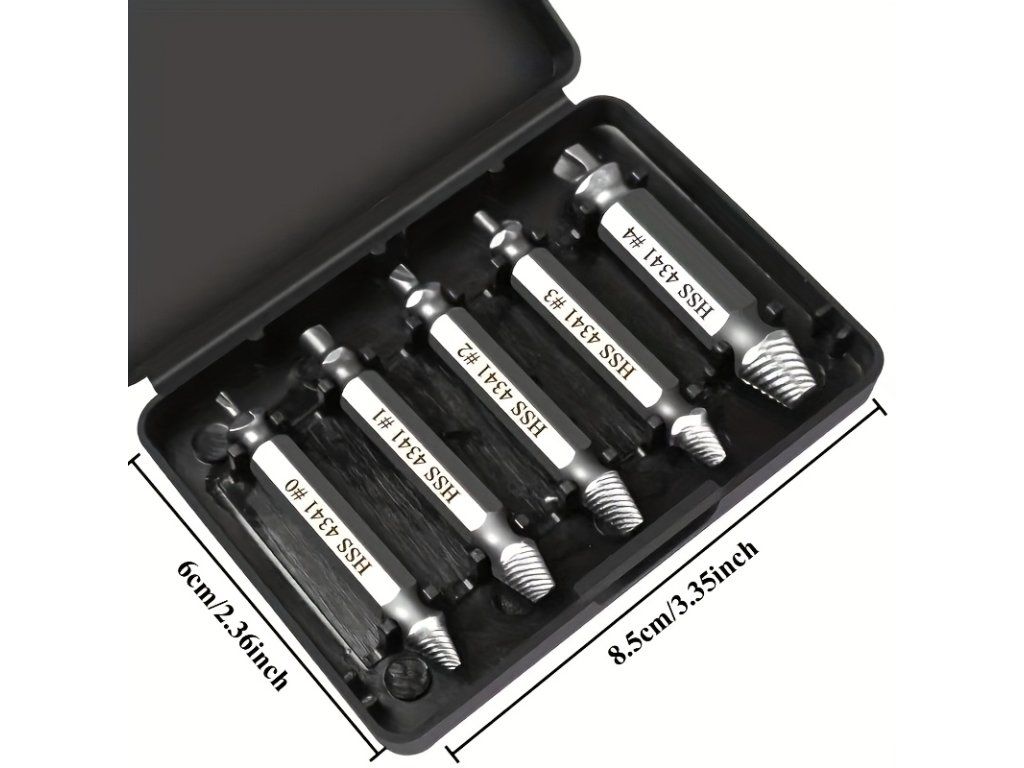 Sada vytahováků zlomených šroubů je praktický nástroj pro bezpečné odstranění zalomených nebo poškozených šroubů bez poškození závitu v otvoru. Díky robustní konstrukci z rychlořezné oceli (HSS) a označení velikostí je práce s extraktory přesná a efektivní. Hlavní vlastnosti: Účel: Odstranění zalomených nebo poškozených šroubů bez poškození závitu. Materiál: Rychlořezná ocel (HSS) pro vysokou odolnost. Označení: Číslované pro snadné rozpoznání velikosti. Obsah sady: 5 kusů pro různé průměry šroubů (např. 0–6 mm, 1–8 mm, 2–10 mm).Buďte první, kdo napíše příspěvek k této položce.