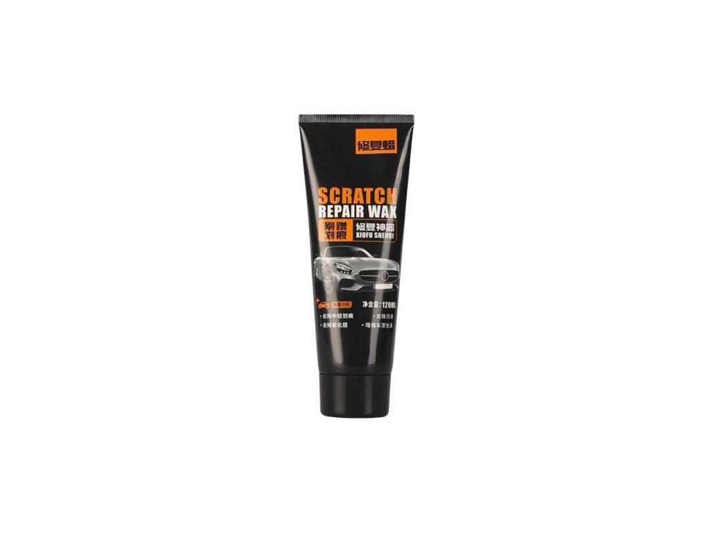 Jedná se o voskovou pastu určenou k opravě drobných škrábanců na autolaku. Produkt je dodáván v černé tubě s označením „Scratch Repair Wax“ a je vhodný pro všechny barvy laků. Text na obalu uvádí, že je bezpečný pro různé typy povrchů a snadno použitelný. Vlastnosti: • Opravuje drobné škrábance na karoserii • Vhodný pro všechny barvy laků • Snadná aplikace • Ochranný nátěr po použití • Obsahuje text v angličtině i čínštiněDoplňkové parametry