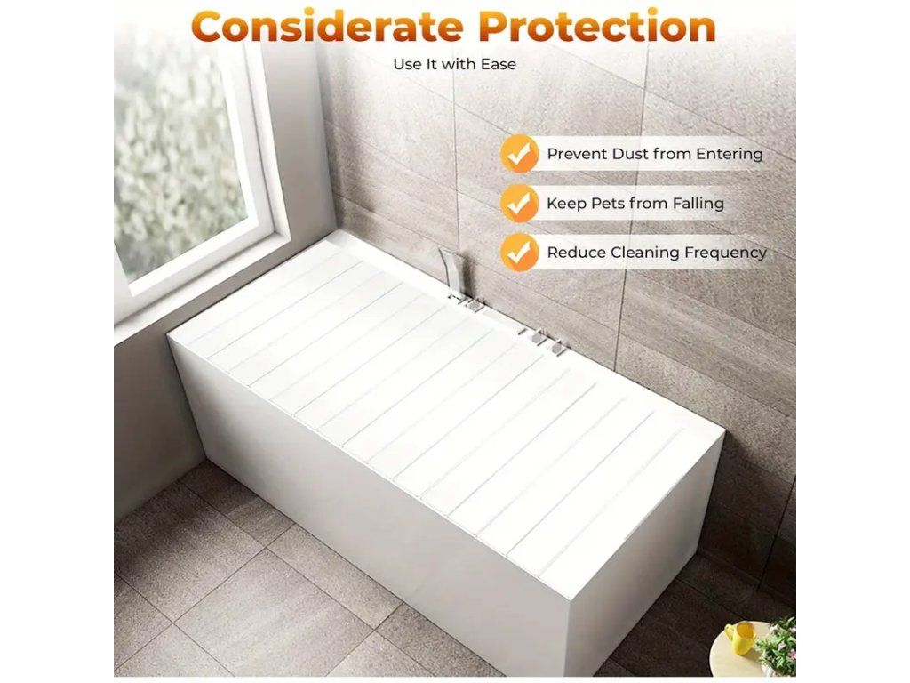 Skládací kryt na vanu je praktické a estetické řešení pro ochranu vaší vany před nečistotami, prachem a poškozením, zároveň nabízí pohodlnou funkci jako odkládací plocha. Vyrobený z odolného materiálu odolávajícího vlhkosti a teplotním změnám, kryt je navržen tak, aby přesně seděl na standardní rozměry vany, aniž by omezoval přístup k baterii nebo odtoku. Díky skládacímu provedení jej snadno složíte a uskladníte, když ho právě nepotřebujete. Montáž je rychlá a bez nutnosti nářadí — kryt lze jednoduše položit přes okraj vany a jeho stabilní konstrukce zabrání sklouznutí. Povrch je lehce omyvatelný, odolný vůči skvrnám a chemickým čisticím prostředkům běžně používaným v koupelně. Kryt je vhodný pro použití v domácnostech i pronájmech, kde oceníte kombinaci praktičnosti a čistého designu. Poskytuje také bezpečné místo pro odložení šamponů, houbiček nebo malých doplňků při napouštění vany. Díky pevné a zároveň lehké konstrukci je manipulace jednoduchá i pro seniory. Specifikace: odolný materiál proti vlhkosti, skládací provedení pro snadné skladování, jednoduchá montáž bez nářadí, snadné čištění, kompatibilní s běžnými rozměry van.Buďte první, kdo napíše příspěvek k této položce.