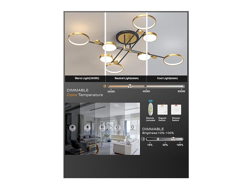 Moderní stmívatelné stropní svítidlo typu „semi‑flush“ kombinuje elegantní design se silným a přitom regulovatelným osvětlením. Tento typ světla je ideální pro obytné prostory jako obývací pokoj, ložnice, chodba nebo jídelna, kde chceš mít možnost upravit intenzitu světla podle nálady nebo potřeby. Svítidlo se montuje přímo na strop, ale díky mírnému odstupu od stropní plochy lépe rozptyluje světlo než zcela přisazené modely, což vytváří příjemnou atmosféru a dostatečné osvětlení pro každodenní použití.Doplňkové parametry