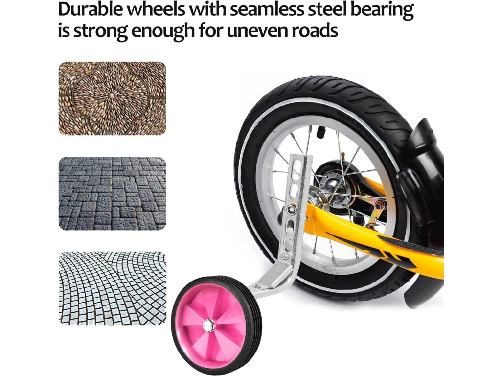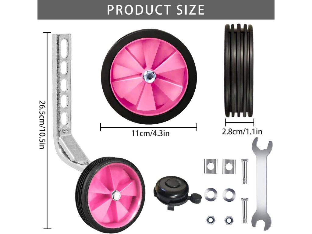 Vlastnosti produktu • Kompatibilita: vhodné pro dětská kola s velikostí kol od 16 do 22 palců • Materiál: robustní železo, plast a guma • Barva: žlutobílá (varianta „A-Gelb-Weißes Eisen“) • Průměr koleček: 22 palců • Šířka ráfku: 1 cm • Hmotnost: cca 750 g • Rozměry balení: 30.2 × 21.9 × 3.7 cm Klíčové vlastnosti • Kvalitní konstrukce: pevné kovové podpěry pro stabilitu a bezpečnost • Rychlá montáž: snadná instalace pomocí dodaného příslušenství • Protiskluzové a tiché: gumová kolečka zajišťují tichý a bezpečný provoz • Nastavitelná výška: přizpůsobitelná podle velikosti kola dítěte • Ekologické materiály: opakovaně použitelné, šetrné k životnímu prostředíDoplňkové parametry