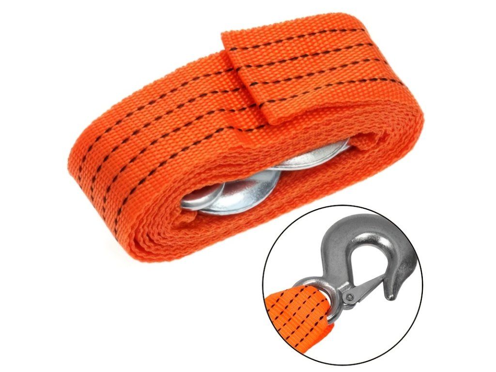 Tažné lano s háky je určeno pro nouzový odtah osobních a lehkých užitkových vozidel. Lano je vyrobeno z pevného polyesterového popruhu, který je odolný proti přetržení. Díky výrazné oranžové barvě je dobře viditelné i za zhoršených podmínek. Na obou koncích jsou umístěny ocelové háky s bezpečnostní západkou pro snadné a pevné uchycení k vozidlu. Specifikace • Délka: 3 m • Nosnost: 3 t • Materiál: polyesterový popruh • Háky: ocelové s bezpečnostní západkou • Barva: oranžová (vysoká viditelnost) • Použití: odtah osobních a lehkých užitkových vozidelBuďte první, kdo napíše příspěvek k této položce.