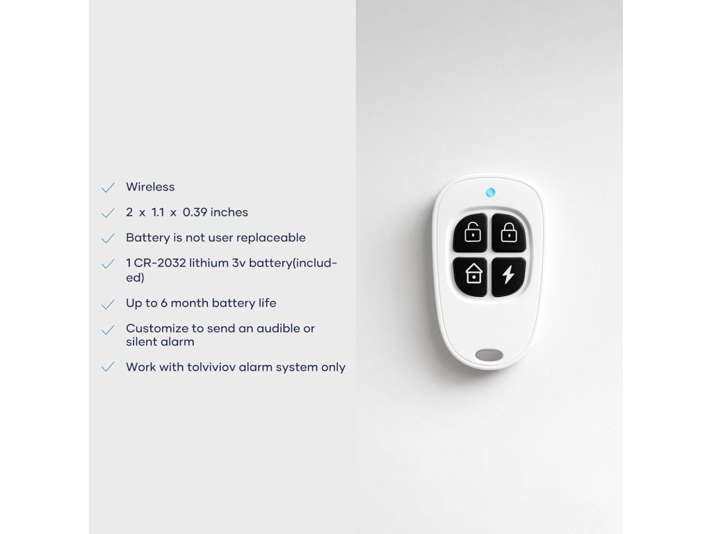 【Tolviviov Remote Montrol 】Funguje pouze s Tolviviov domácím alarmem. 【SIGNÁL Stabilita】Stabilní signál. Signál Tolviviovova dálkového ovládání může procházet stěnami, podlahami a dveřmi a stabilně ovládat přijímač z jakéhokoli místa v spolehlivé vzdálenosti. 【Výhody】 Bezdrátový přijímací řadič má vlastnosti vysoké důvěrnosti, stabilního výkonu a nízké spotřeby energie. Proti rušení: Použitím technologie bezdrátového bezdrátového kódování bez směru lze dosáhnout nezávislého řízení bez vzájemného rušení. 【Multi režim】Domácí režim lze ovládat dálkovým ovládáním: režim paže, režim odzbrojení, režim pryč a režim SOS. Host podporuje až 5 dálkových ovladačů pro ovládání. 【Snadné a pohodlné】Bezdrátové ovládání, snadné na instalaci. Klepněte na "Příslušenství" dole v aplikaci Smart Life. Pak klepněte na "Ovladače", klepněte na "+ Přidat". STISKNĚTE jakékoli tlačítko dálkového ovládání, abyste v tuto chvíli spustili dálkový ovladač.Doplňkové parametry
