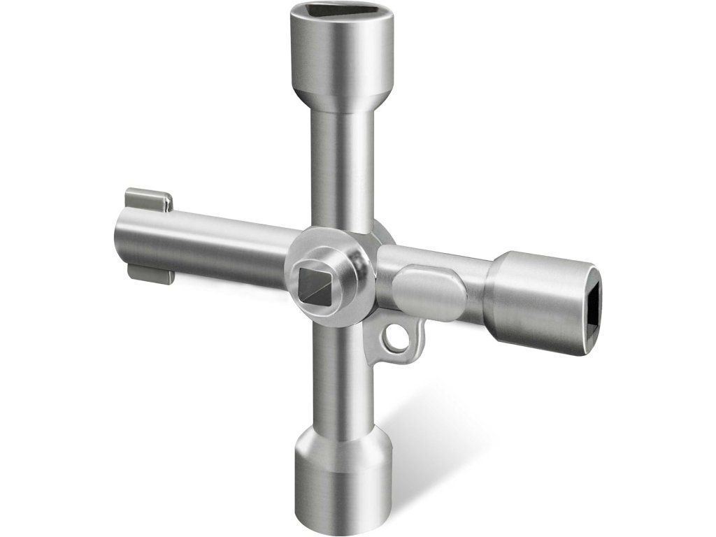 Univerzální křížový klíč 4v1 je určen pro otevírání technických rozvodných skříní a servisních uzávěrů. Využívá se pro elektřinu, plyn, vodu, výtahy nebo poštovní schránky. Klíč obsahuje čtyři různé typy koncovek, obvykle dva čtvercové, jeden trojúhelníkový a jeden speciální tvar, což umožňuje široké využití. Díky kompaktnímu křížovému provedení poskytuje dobrý úchop a efektivní přenos síly při manipulaci. Vyroben je z odolného materiálu pro dlouhou životnost. Specifikace: Typ: technický klíč 4v1 Provedení: křížové Konce: čtverec, trojúhelník, speciální tvar Materiál: slitina kovu / nerezová ocel Použití: rozvaděče, technické skříně, výtahy, schránkyBuďte první, kdo napíše příspěvek k této položce.